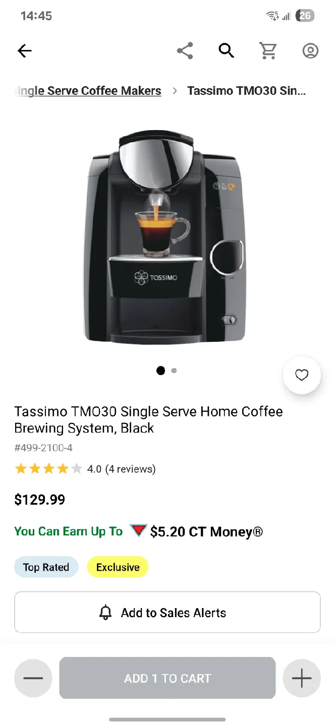 - Tassimo TMO30 Single Serve Home Coffee Brewing System, BlackElectronics & Appliances·$45004