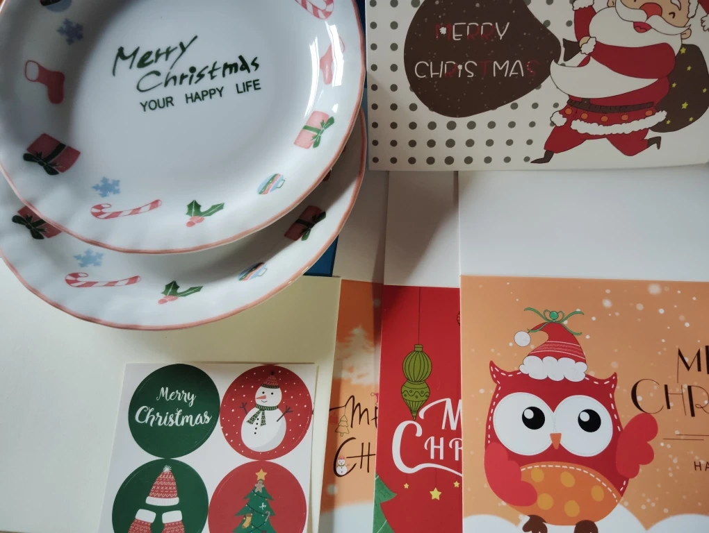 あったかクリスマス クリスマスプレート2枚、(クリスマスカード・シール・封筒)4セット