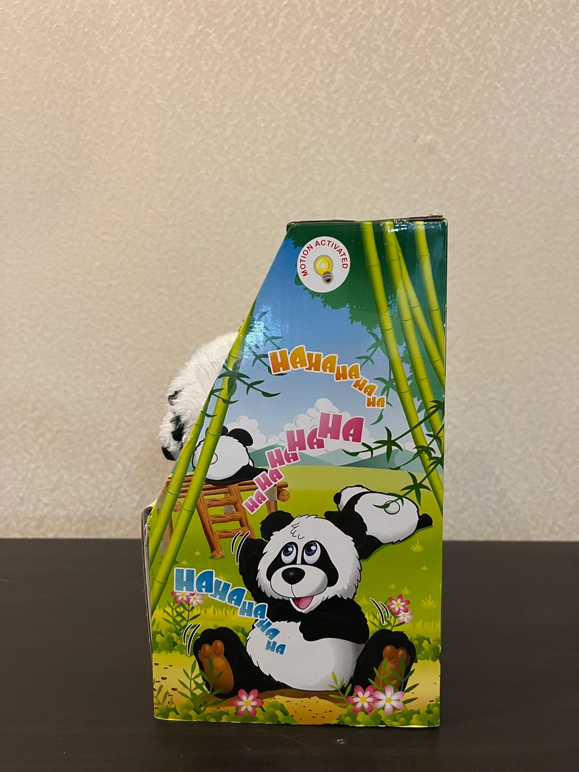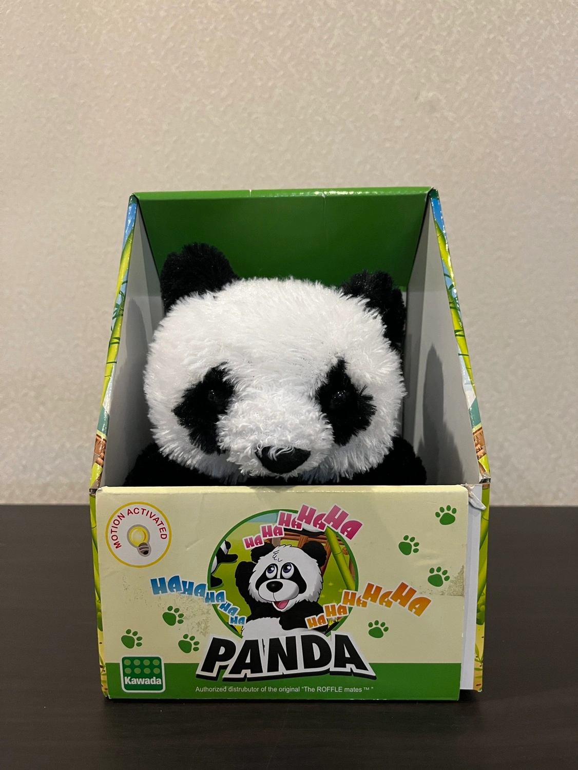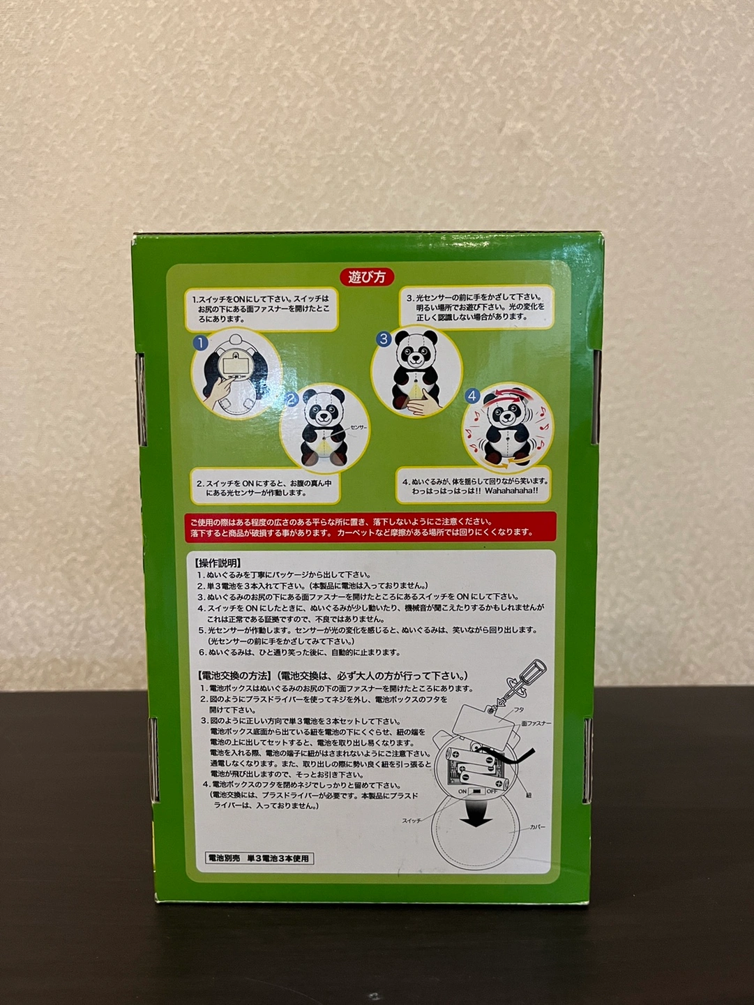 触り心地良好 お腹にある光センサーに手をかざすと、おしゃべり・笑いながらパンダがくるくる動きます。 単3 × 3本 (別売) 【動作確認済み】 電池を入れるて、センサーに手をかざすと「おしゃべり」します。 寸法 幅16cm × 奥行き13cm × 高さ20cm <箱入りの場合 - 幅18cm × 奥行き14cm × 高さ24cm> →自らメジャーで測っております 多少の誤差はあり
