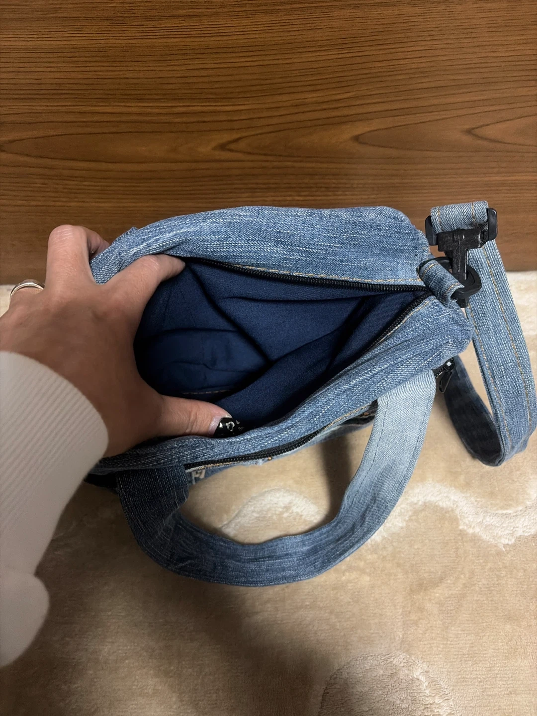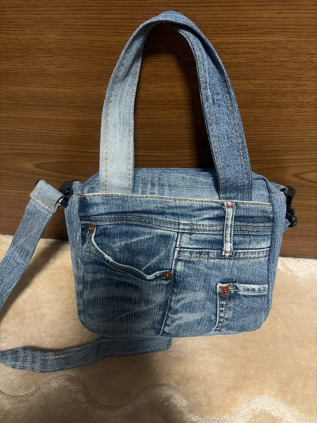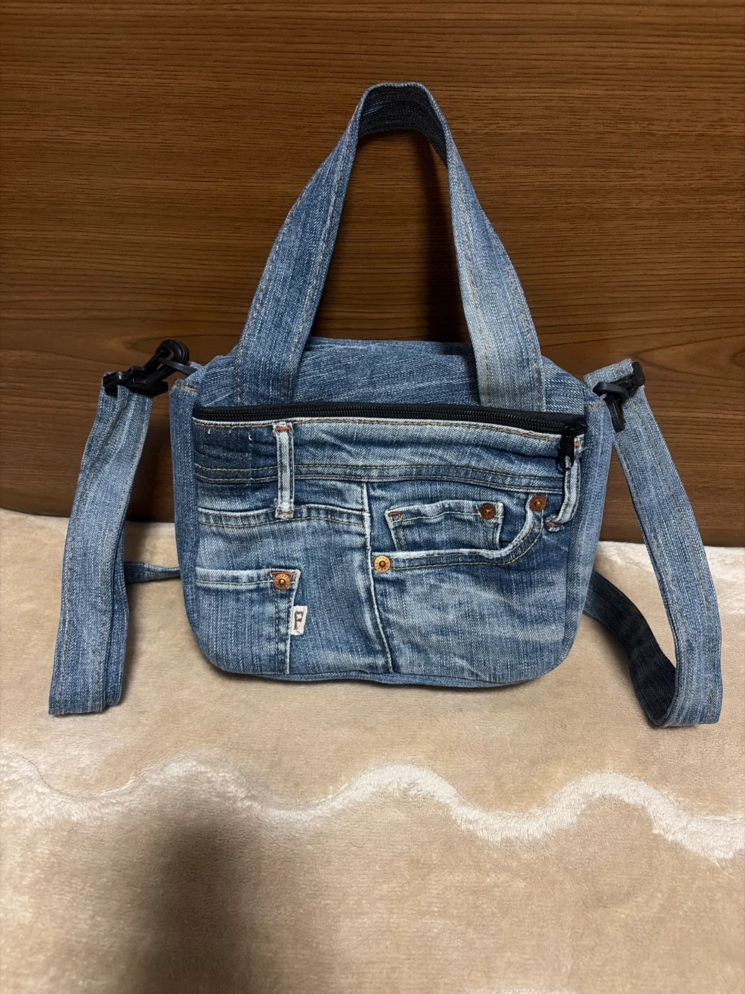 デニムのリメイクバッグです。 ・素材:デニム ・状態:一度も使わず自宅保管です✨️ お子様やお孫さんのプレゼント🎁にいかがでしょうか?🤗 一応、中古品であることをご了承ください。
