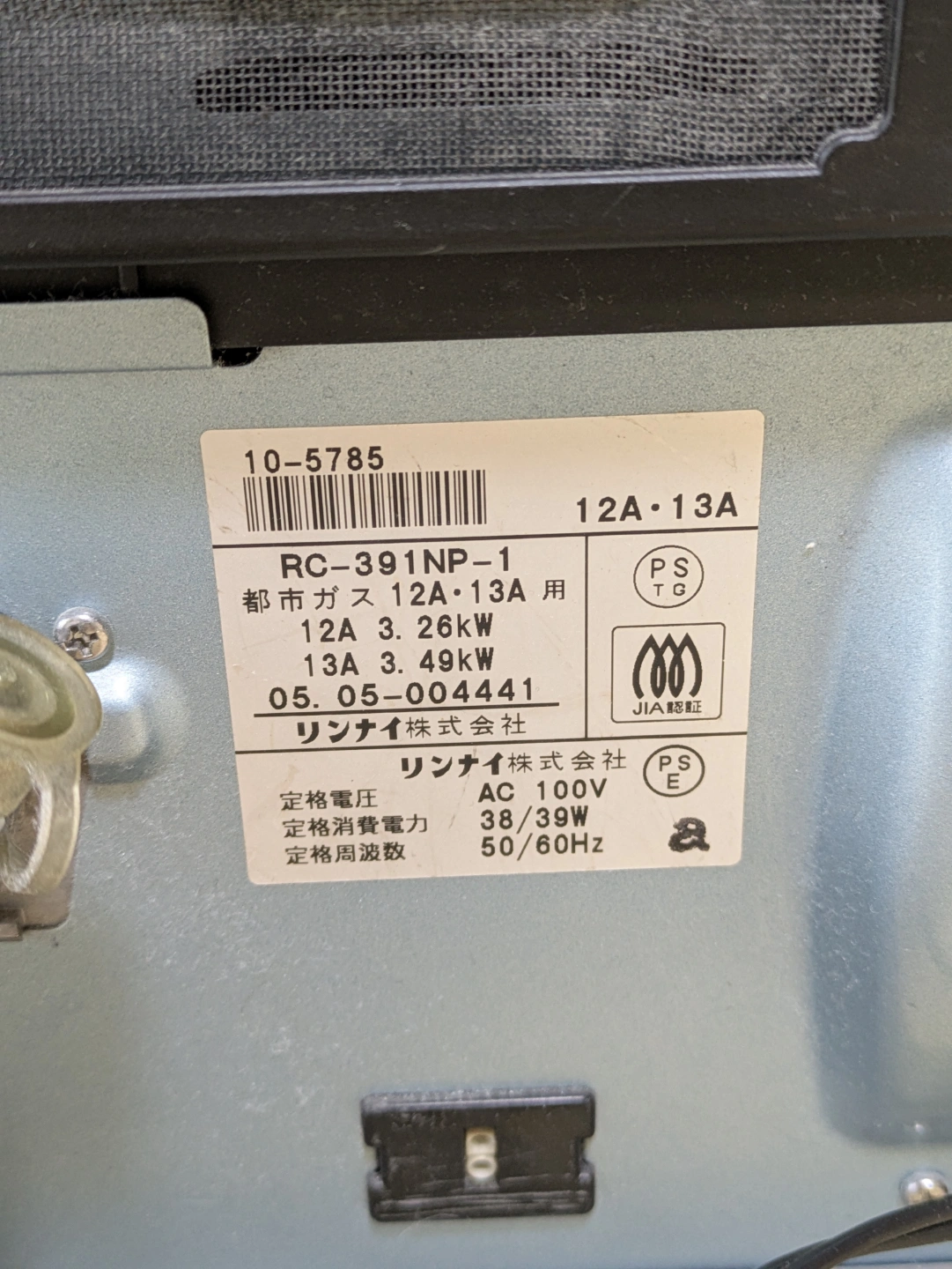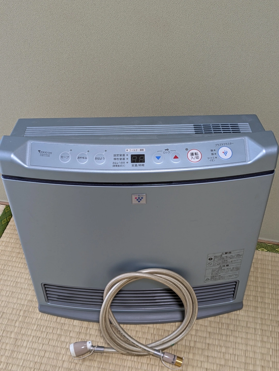 ご覧頂きありがとうございます。 リンナイ製のガスファンヒーターになります。 引越先がガスに対応していないため、必要な方にご活用頂きたく出品します。 都市ガス(12A・13A)用 型番:RC-391NP-1 プラスマクラスター搭載 製品仕様は5枚目の写真をご覧ください。 先日まで快調に動作しておりました。 6畳の和室にはパワフルすぎるほどでした。 次の冬からも活躍出来ると思います。 2m、3m、5mのガスホースがあります。 ご希望の長さをお知らせ下さい。 3本おまとめでもOKです。 お取り引きにつきましては お手数ですがプロフィールをご覧下さい。 ご近所でしたら(概ね京王線〜田園都市線) 日時によってお近くまでお届け出来ますので ご相談下さい。 ご検討よろしくお願い致します。