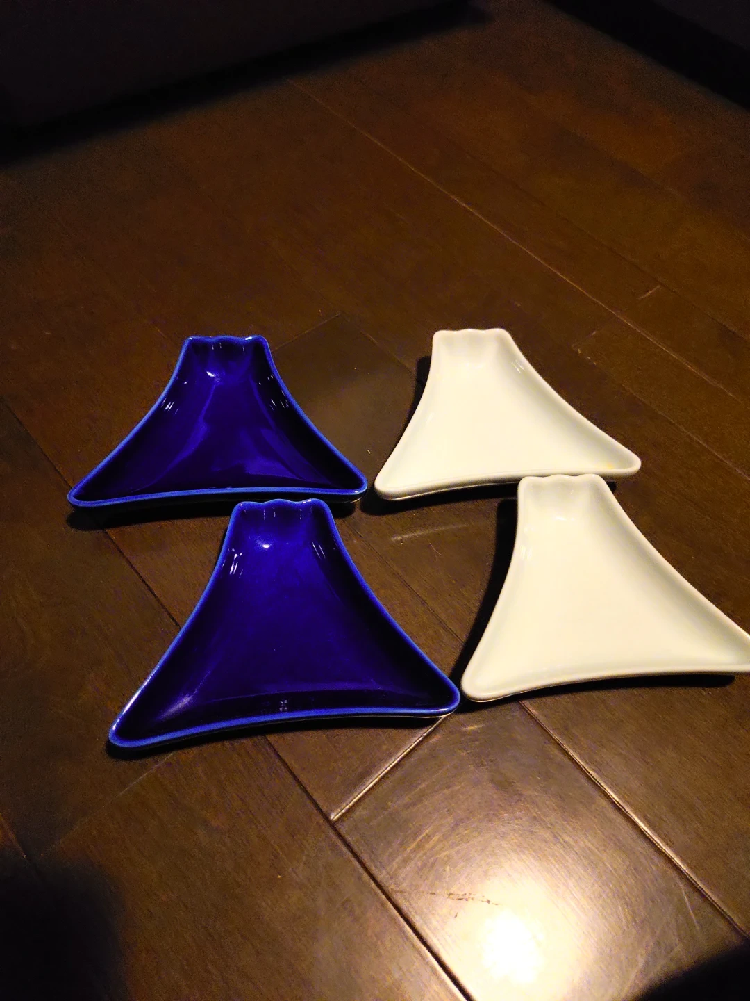 あたたかさ富士山をかたどったの豆皿4枚セットです。 縦横どちらも10cmくらいです。 状態は良好です☺️ ご不明点があればお気軽にお尋ねください。