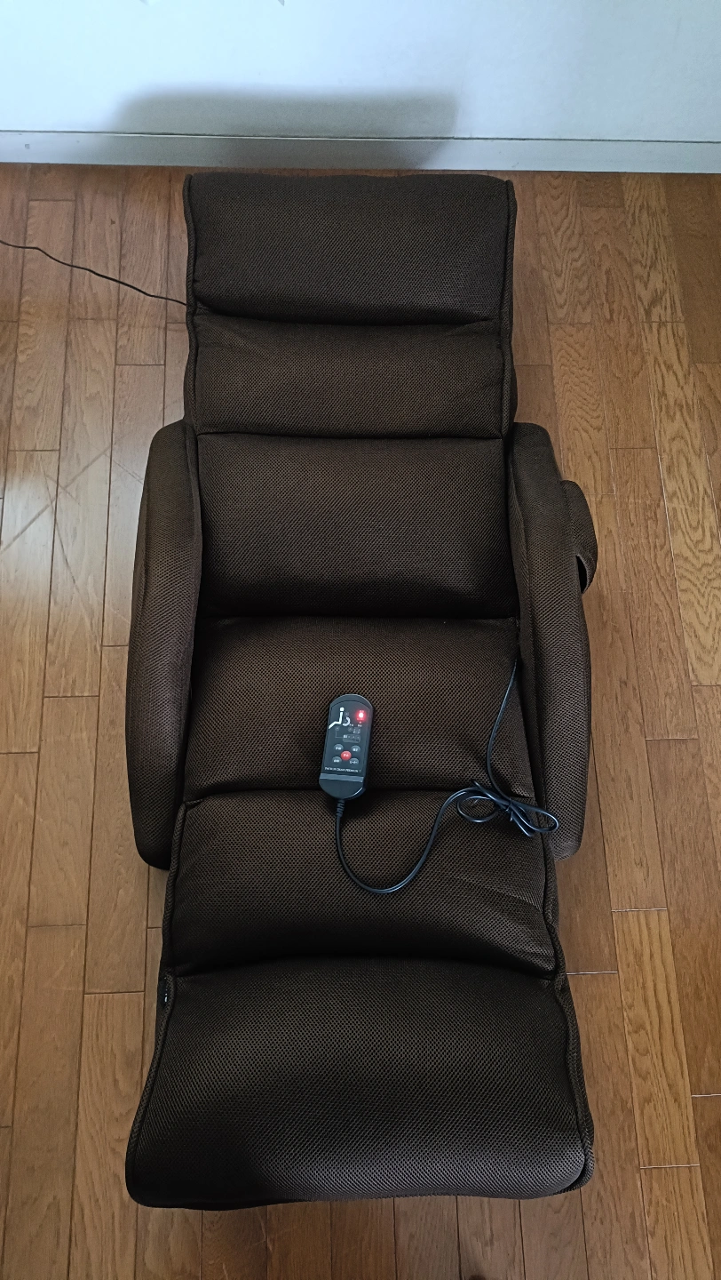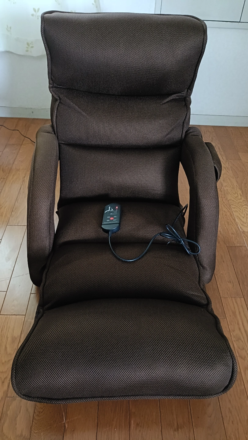 あたたかさツカモトエイム社 マッサージ座椅子(ヒーター付) もみ玉でなく振動タイプです。 ヒーター付座椅子と思えば快適かと。 ブラウン 動作確認済 背面、座面どちらでも使用出来るもので、平らになり寝て使う事もできます。 ほとんど使用してなく、置きっぱなしでした。 少しかさばるので車で運びますよ。