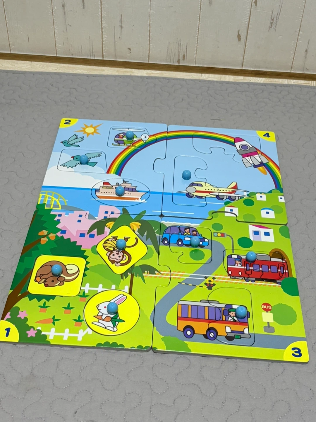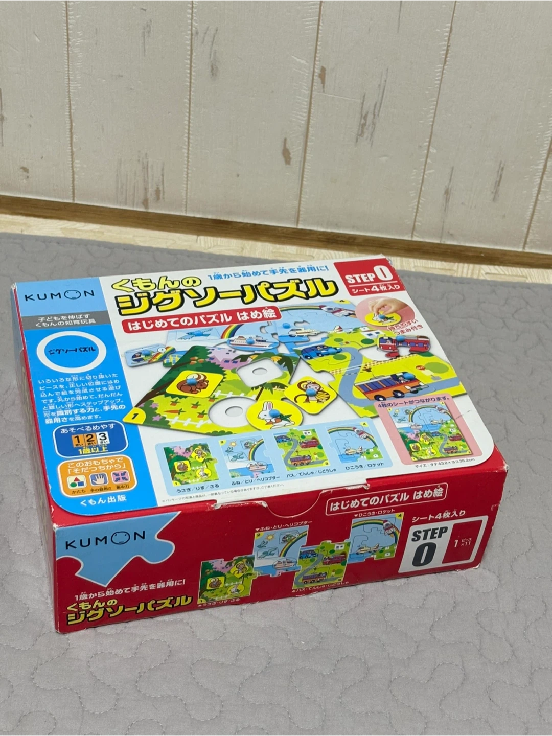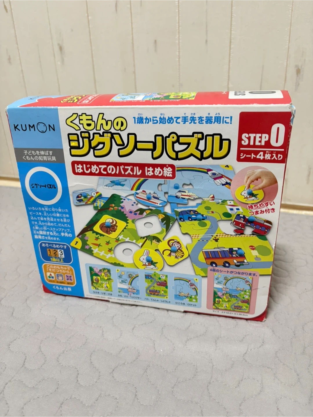 くもんのジグソーパズルです ・STEP 0 ・4枚のシートがつながります ・状態:使用感は少なめです 1歳からあそべるパズ ルのシートが4枚ついています。その4つも繋げて遊べます。 つまみが付いているので小さなお子さんが持ちやすく、初めてのパズルに最適です🧩 定価2〜3000円ほどでした。 中古品であることをご了承ください。