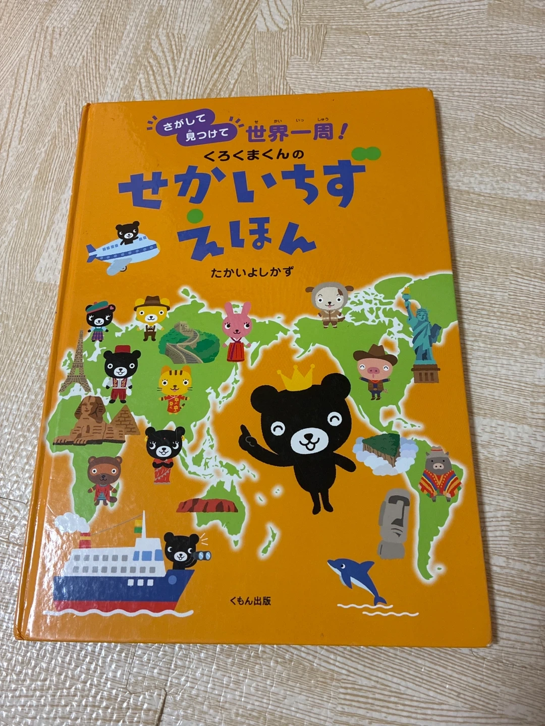 世界地図の入り口として読みやすい絵本です。 まとめ割します🙆♀️ くろくまくんの絵本です。 ・さがして見つけて世界一周 ・くもん出版 中古品であることをご了承ください。