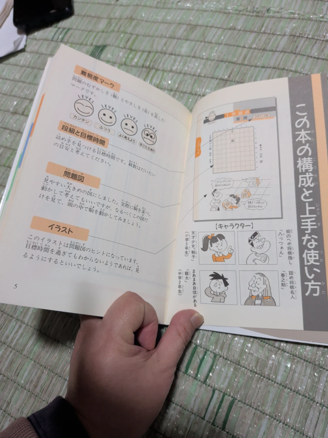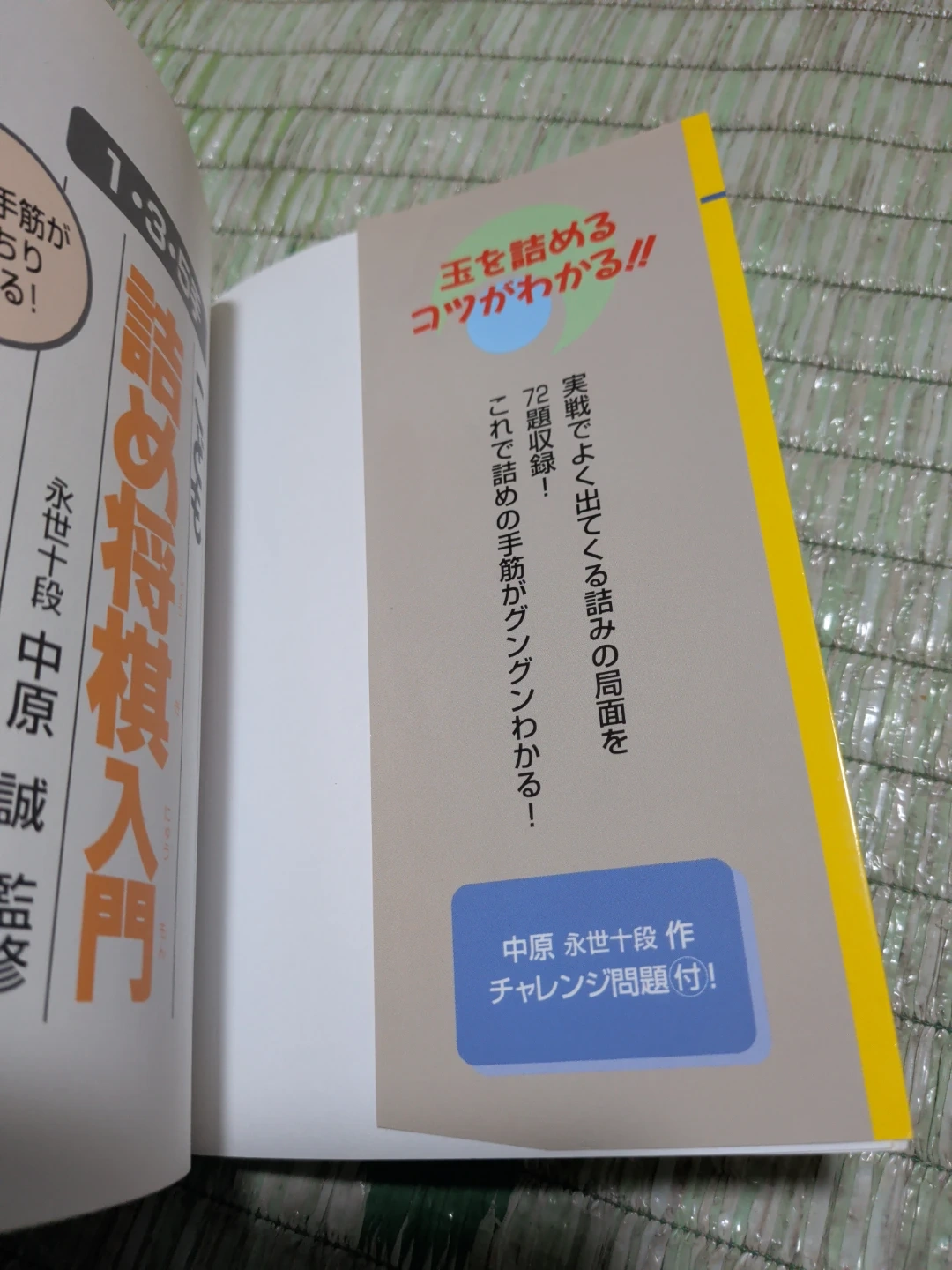 詰め将棋入門の本です。 こどもでもわかりやすいように詰将棋のルール説明が最初に書いてあります。キャラクターによるイラスト説明があり、こどもでも解きやすい工夫がされてます。 対局でよくみかける詰みの局面を中心に、1手・3手・5手の詰将棋を集めた、終盤に強くなる為の入門書です。将棋を覚えたてで強くなりたいと思ってるお子さんにいかがでしょうか? 書き込みはありませんが、多少の折れなどがある中古品であることをご了承ください。