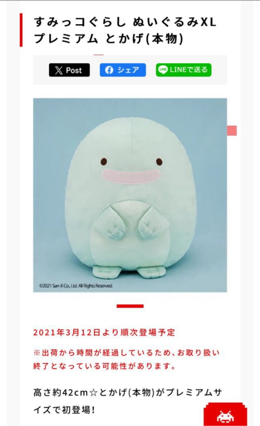 すみっコぐらし クレーンゲーム プライズ  ぬいぐるみ XL プレミアム とかげ (本物) 袋に入れた状態で暗所にて保管しておりました。