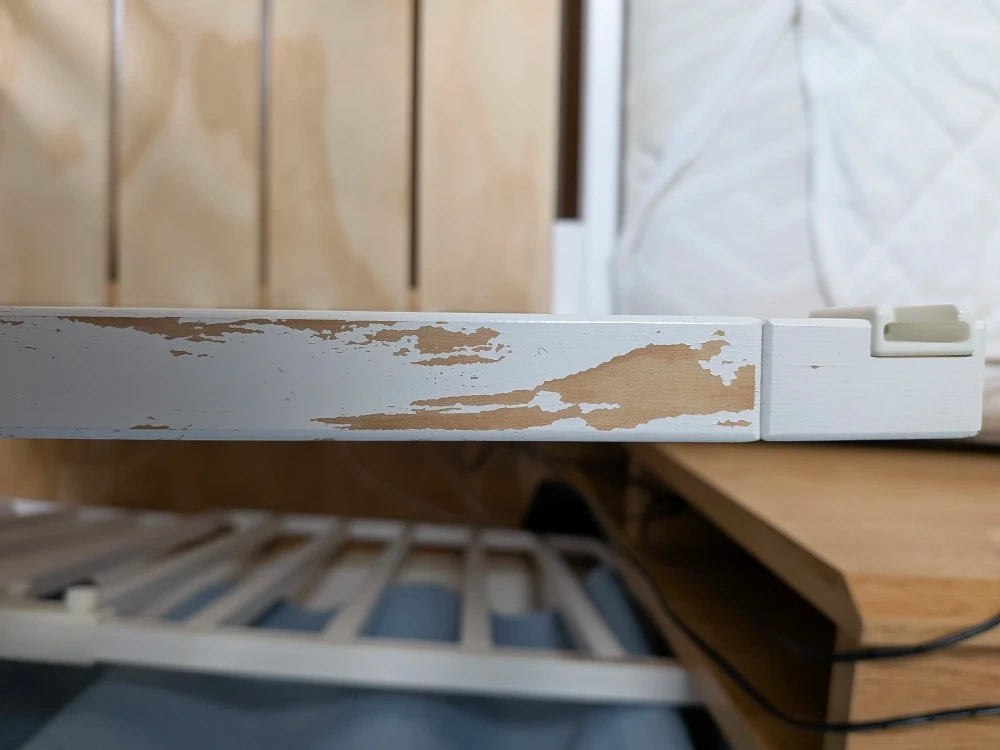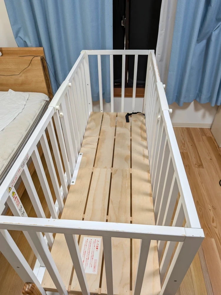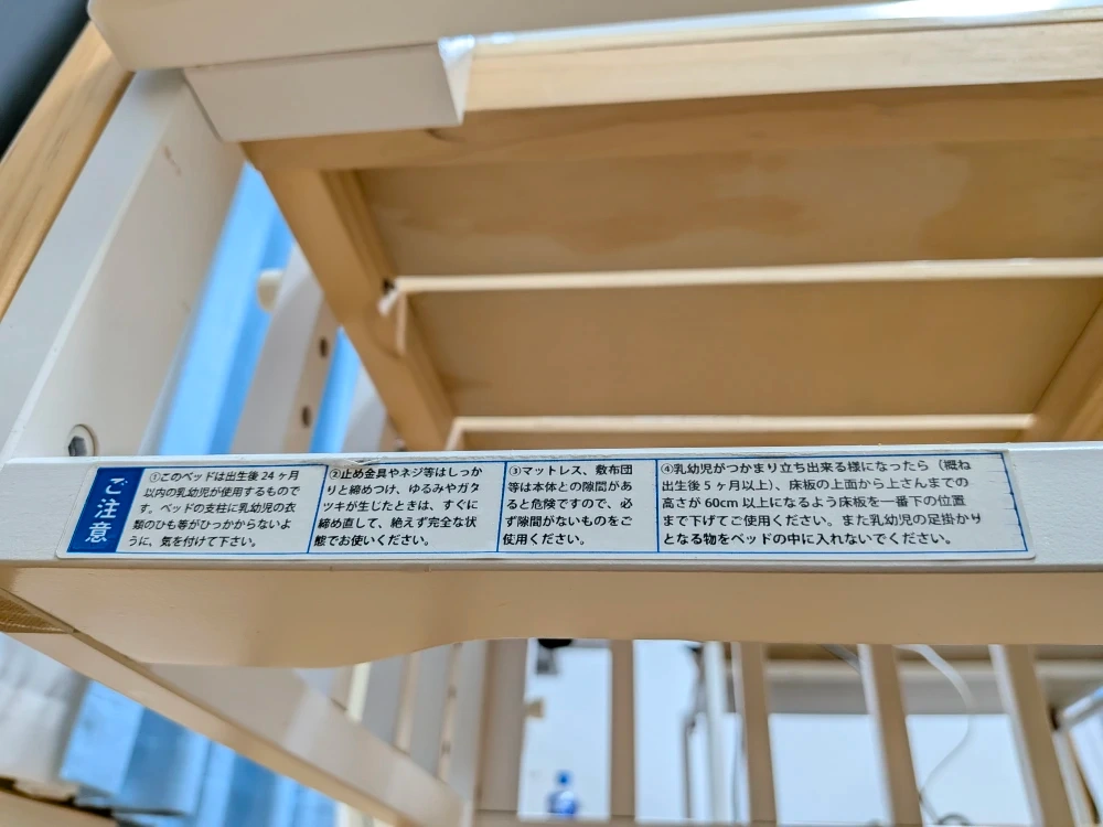そいねーるⅢ(大和屋)です。 2021年購入、 上の子4歳 下の子1歳 で使用しました。 使用感はありますが、まだ利用できます。 中古品であることをご了承ください。 (塗装が離れてる箇所があります。写真も添付します) 説明書を紛失していますが、ネット上の取扱説明書を印刷したものもお付けできます(写真参照)