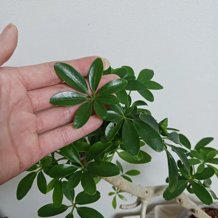 シェフレラ(ホンコン)の小さいタイプのコンパクタです 通常の葉の大きさより小さく可愛らしいです セメント鉢に植え替え済みなのでそのまま飾れます 【植物サイズ鉢込】 横幅26cm 高さ57cm 【セメント鉢サイズ】 6号相当  外寸(一番出っぱってる部分)18cm 内寸(縁の内側)12cm 高さ(深さ)10cm 重さ1050g 鉢底に穴あり アンティーク風のデザインのため、ひび割れたようになっていたり、色にむらがあります 【用土】 赤玉土と鹿沼土を混ぜたもの 底穴が1つのため排水性をよくするために、鉢底に発泡スチロールをちぎったものを使用し、無機質用土にしました 【管理】 ・風通しのよい明るい所に置きます ・水やりは表面が乾いてきたら ・15℃以下の場所に置く場合は水やり頻度を減らし、土の中まで乾いてから与えます
