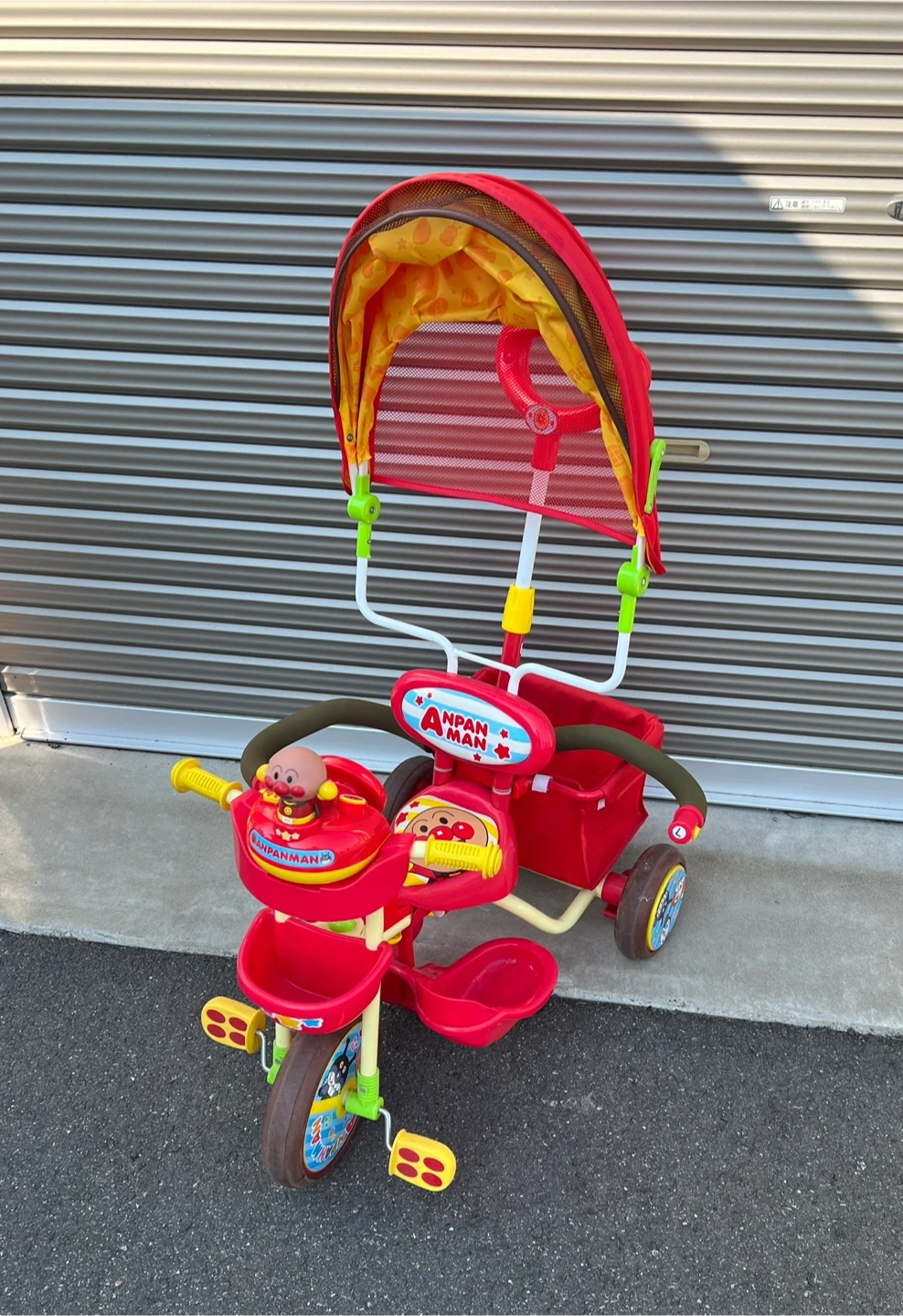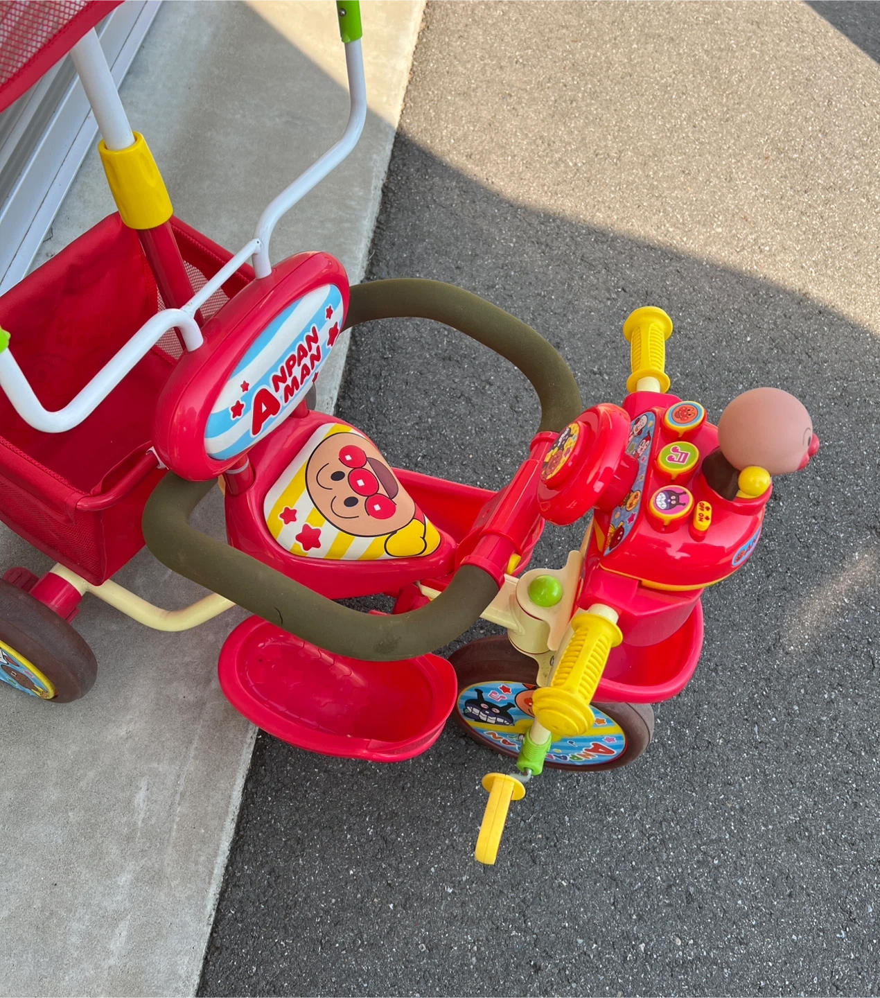 アンパンマンの三輪車です。 ・色:赤 ・日除け付き ・使用感はありますが、まだお使いいただけます 中古品であることご了承ください 初めまして毎日笑顔と申します 数ある中からご閲覧下さり誠にありがとうございます。 お取引きのお待ち合わせ場所ですが自己紹介欄に記載していますのでご確認をお願い致します。 それいけ!アンパンマンデ ラックス 三輪車 それなりに使用感ありますが まだまだ使って頂けます。 ドタキャンしない方、中古品のためサイズや状態などが目安であることをご了承いただける方のみお問い合わせください。