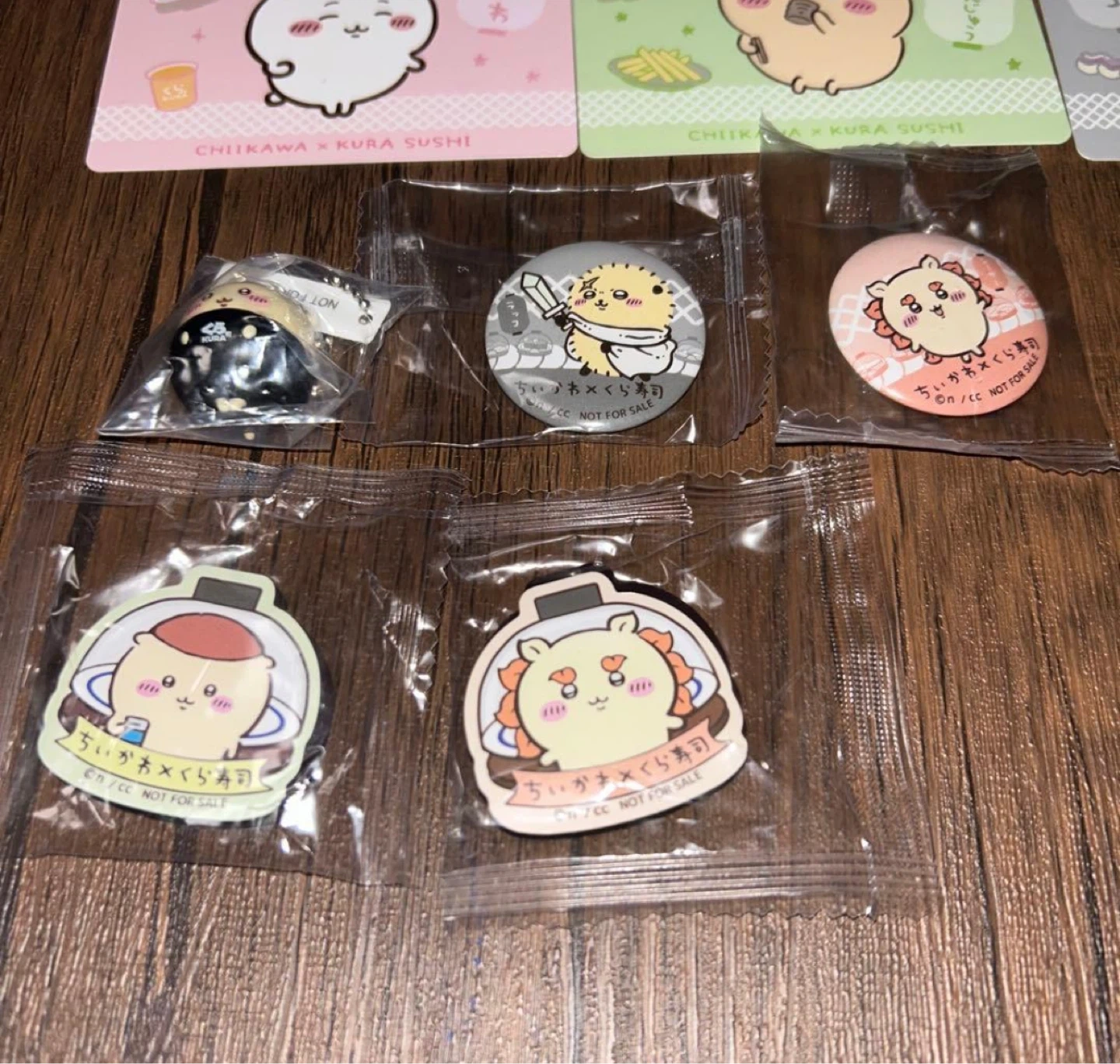 ちいかわ くら寿司 フィギュア、缶バッジ、マグネットセット