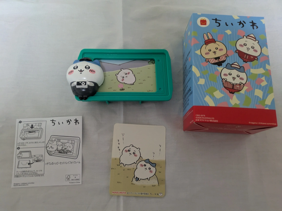 ちいかわハッピーセットです。 新品ではありません。 しばらく家で飾って箱にしまいましたが箱が合っているかわかりません 。 シール1枚付けました。 写真をご覧下さい。 よろしくお願いします。