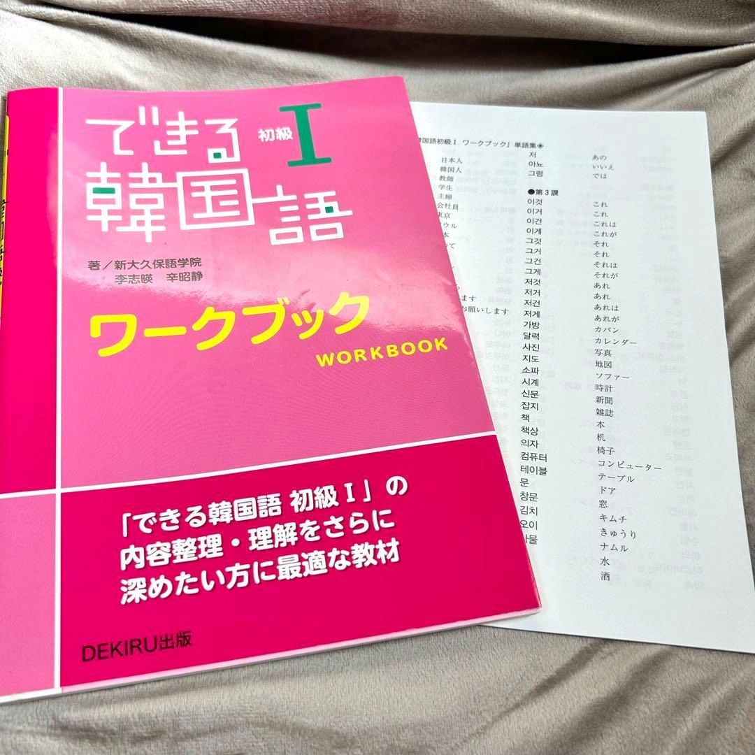 韓国語学習に最適な初級Iテキストとワークブックのセットです。 - タイトル: できる韓国語 初級 I - ワークブック: ワークブック - 出版社: DEKIRU出版 - シリーズ名: できる韓国語 どちらも書き込みが多いため、お安くお譲りします。CDはなくしてしまい、付属しません。ご希望の方はお気軽にご連絡ください。