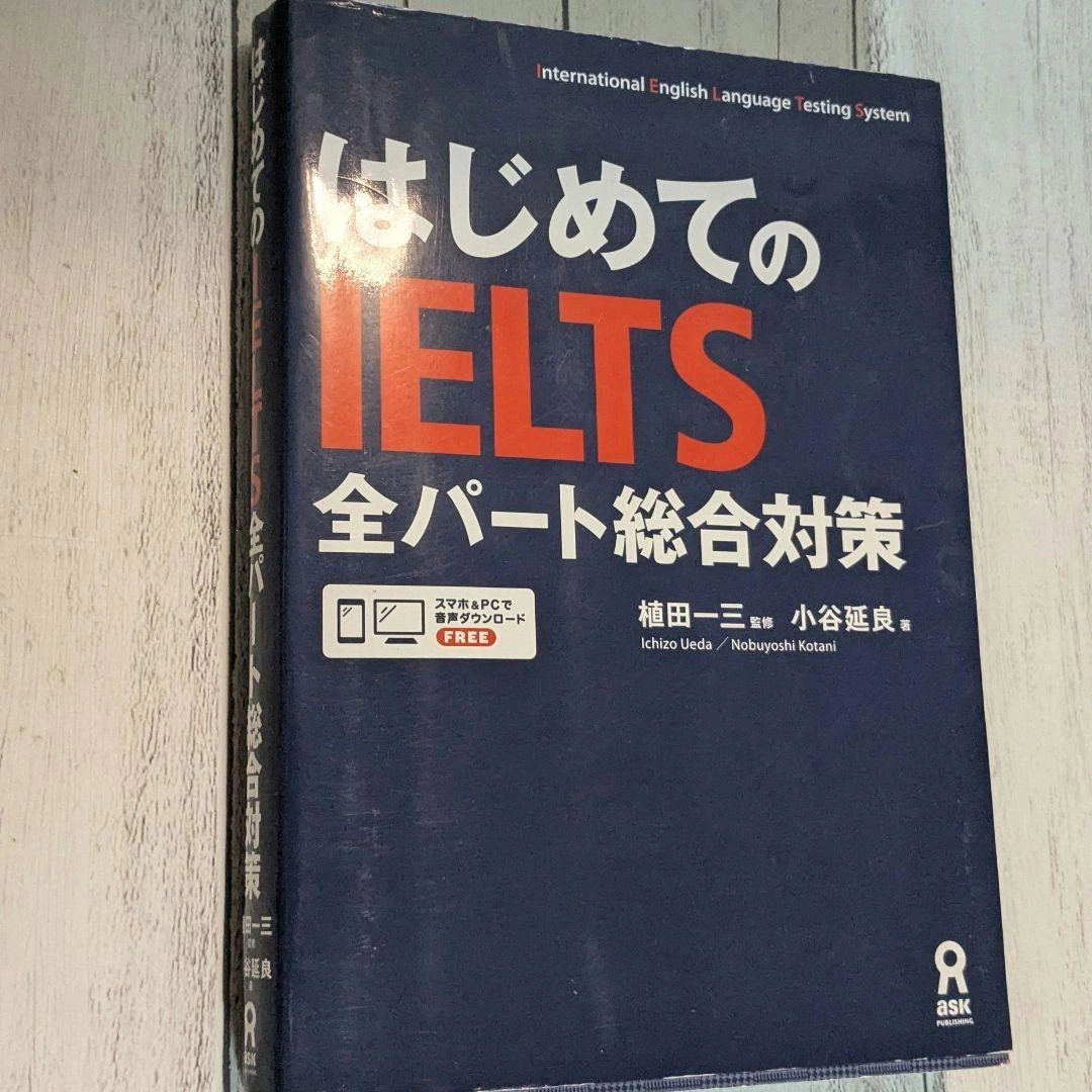 IELTS試験対策に特化した日本語の参考書です。 - タイトル: はじめてのIELTS 全パート総合対策 - 著者: 植田一三・小谷延貴 - 出版社: ASK - 言語: 日本語 - 付属品: 無料PC・スマートフォン用ダウンロードコード ご覧いただきありがとうござい ます。 ご希望の方はお気軽にご連絡ください。