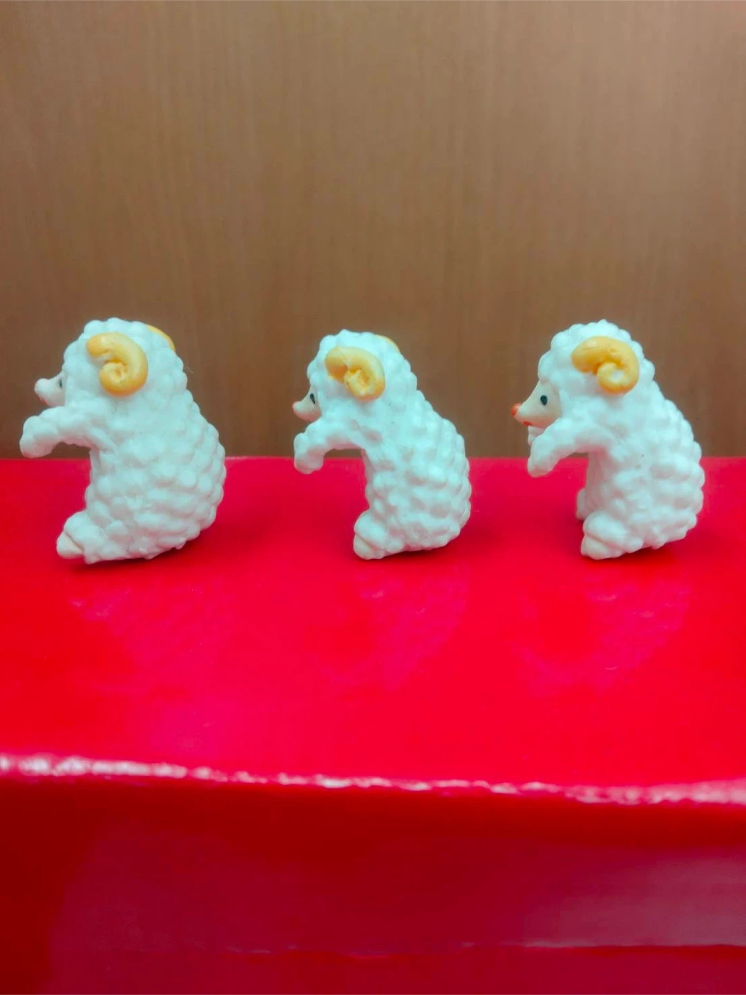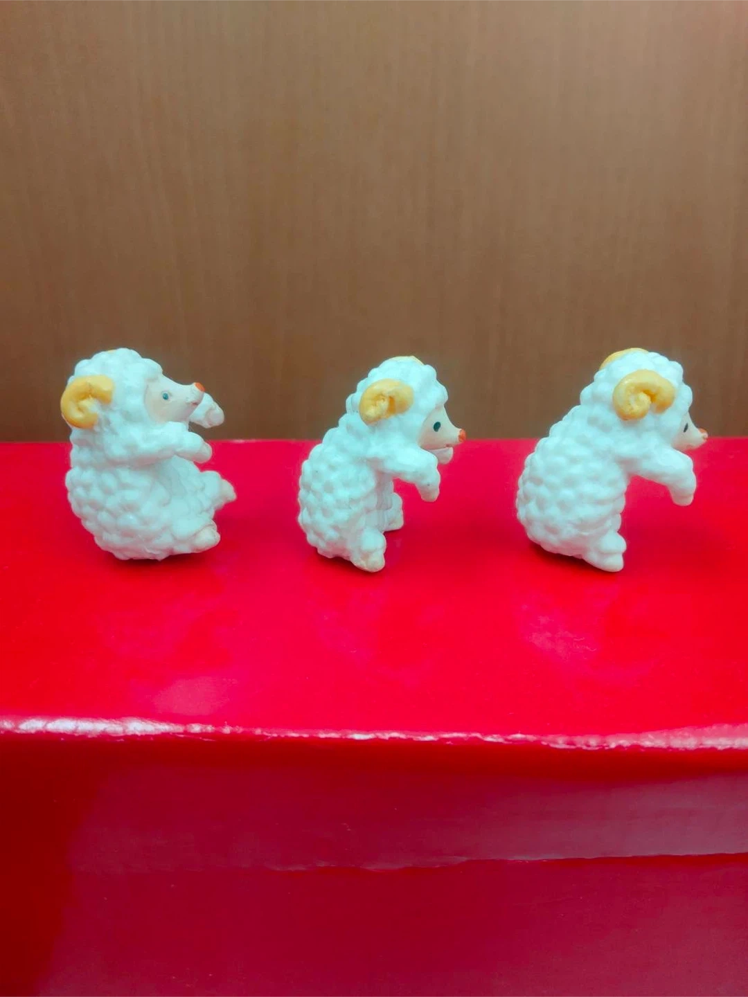 羊 飾り物 2種3匹 一番左だけ少し大きいです 高さ3匹とも3センチ 飾ってあったので少しホコリ汚れ有り 写真は4面撮ってます 宜しくお願いします 自宅3階
