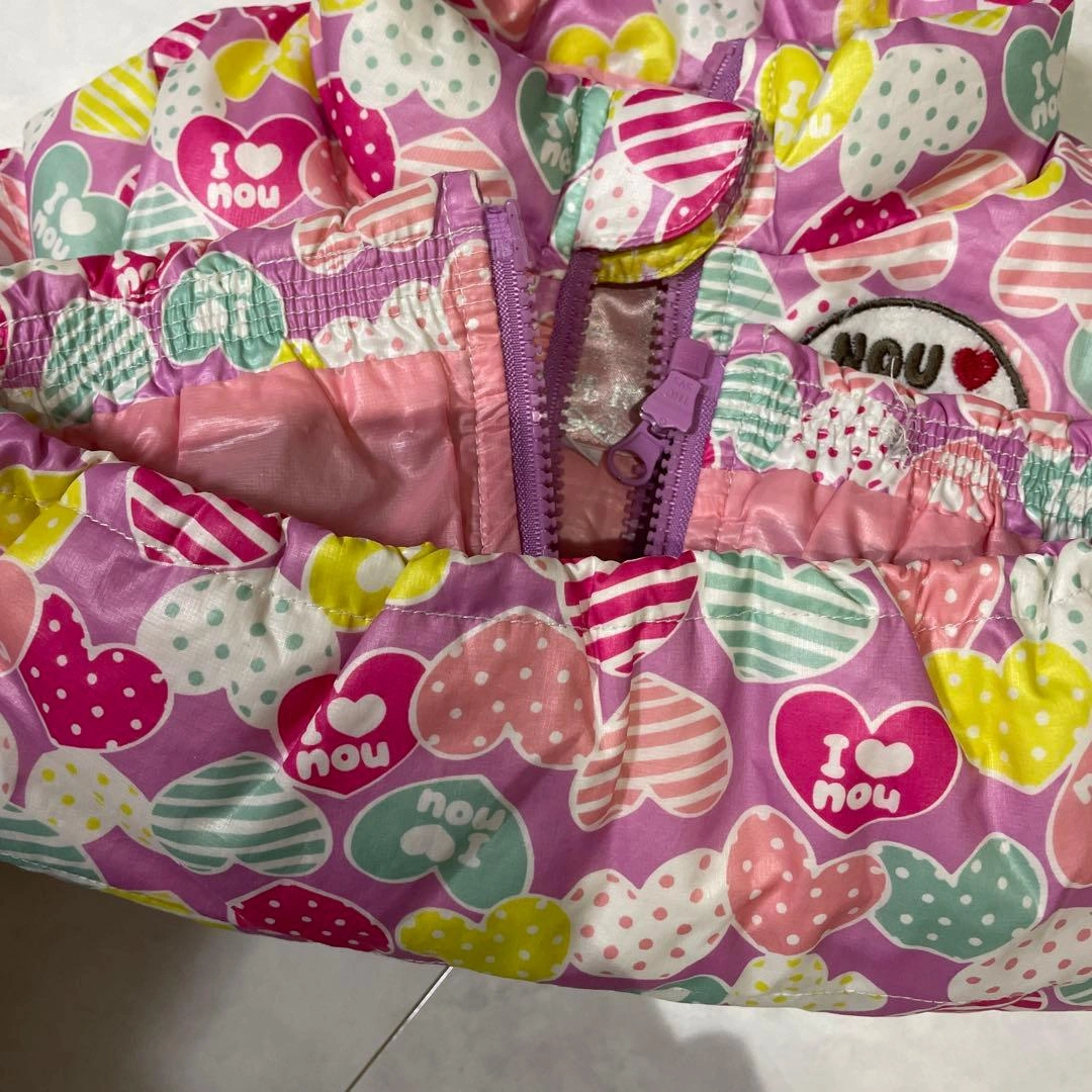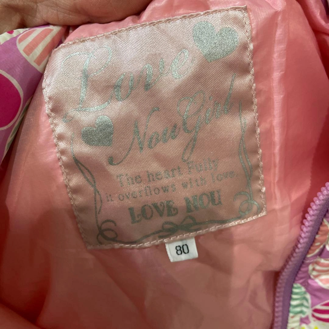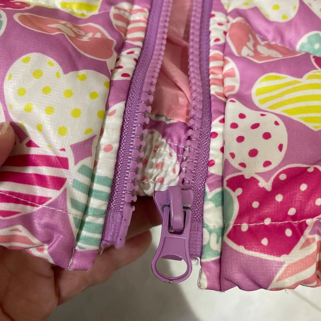 カラ フルなハート柄のジップアップアウター、サイズ80です。 - 色: ピンク系のハート柄 - サイズ: 80 - デザイン: ジップアップ、スタンドカラー - 特徴: カラフルなハート模様 - 素材: ダウン90%、フェザー10% お気に入りでよく着ました★ タグに名前を縫い付けていたので外して送ります。 もっこもこのダウンではないですがダウンなので暖かく、軽く重宝しました(*´꒳`*) ※目立つ汚れはありませんがあくまでも子供の使用した中古品になりますので見落としがあるかもしれませんし、完璧ではありません。ご理解いただける方によろしくお願いします。 気になる箇所があれば事前にお知らせくださいね★ 80のお洋服たくさんあります!