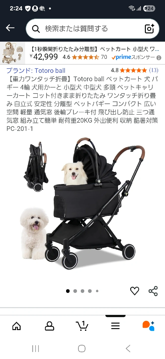 定価、16000位のトトロボールのペットカートです 【情報】 ブランド:トトロボール (Totoro ball) 型番:PC-201-1 【状態】 ほぼ新品 室内で愛犬を1度乗せただけです。 機能的にも、本当に良いんですが、愛犬には大き過ぎました。 コットも外せて、コットつけたまま畳め、そのまま自立もします。 多頭飼いの方にも良いです。 どなたかよろしくお願いします(*^^*)