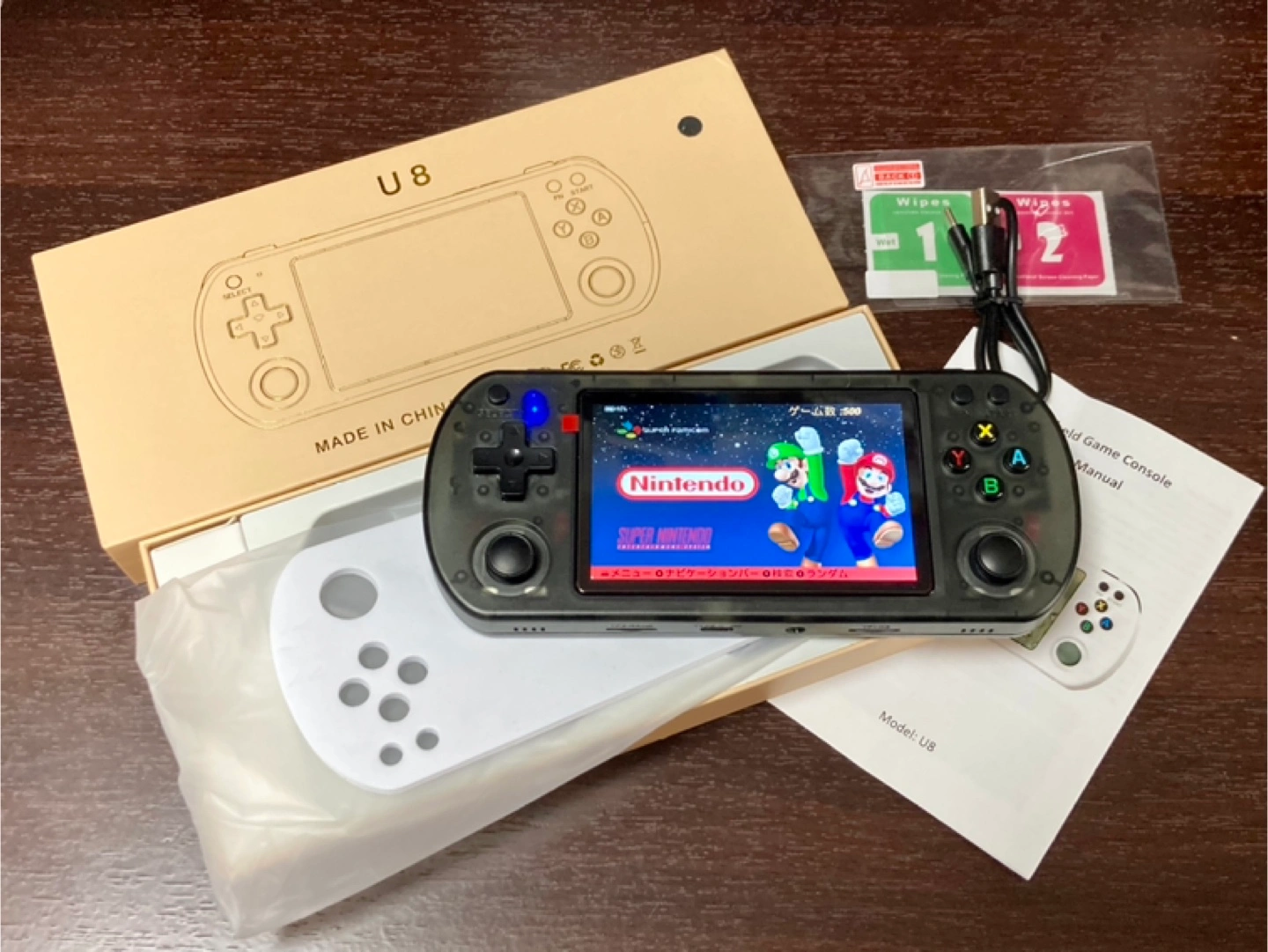 6000円以下にはお値下げできないです。 エミュ機入門にぴったりと評判のレトロマシンです。 すでにかなりデータ入ってますが、内蔵SDカードにデータを足していくことももちろんできます。 日本語対応済み、日本語化してます。 ゲームボーイ、ファミコン、スーファミ、ゲームボーイアドバンス、PCエンジン、メガドライブ、アーケードゲーム、PS1、PSP、など幅広い互換性あり。 かなり分かりやすい操作画面なので、直感的に遊べると思います。 画面の保護フィルム貼ったままです。 OSその他データ入りmicro SD付属。 購入時からたくさんゲーム入ってました。 自分でも手持ちのゲーム何本か追加しました。 お渡し前にゲームデータは削除するつもりですが、ご希望とあればそのままお渡しします。 遊び方などは触ってれば自然と分かると思いますし、ネットで検索すればたくさん情報出てきます。 かんたんに使い方などの説明であればご質問お答えしますが、基本的にご自身で調べられる方よろしくお願いします(PCくわしくない自分でもすぐわかりました)。 兄が勝手に大量にゲーム機を購入していたことが分かり、慌てて処分したく複数のゲーム機を出品しています。 常識の範囲であればお値引きもご相談承りますが、購入価格からかなり安く出品しているので大幅な値下げはごめんなさい、、、 ほとんどがほぼ新品ないし数回しか使っていないためご了承いただけますと幸いです。