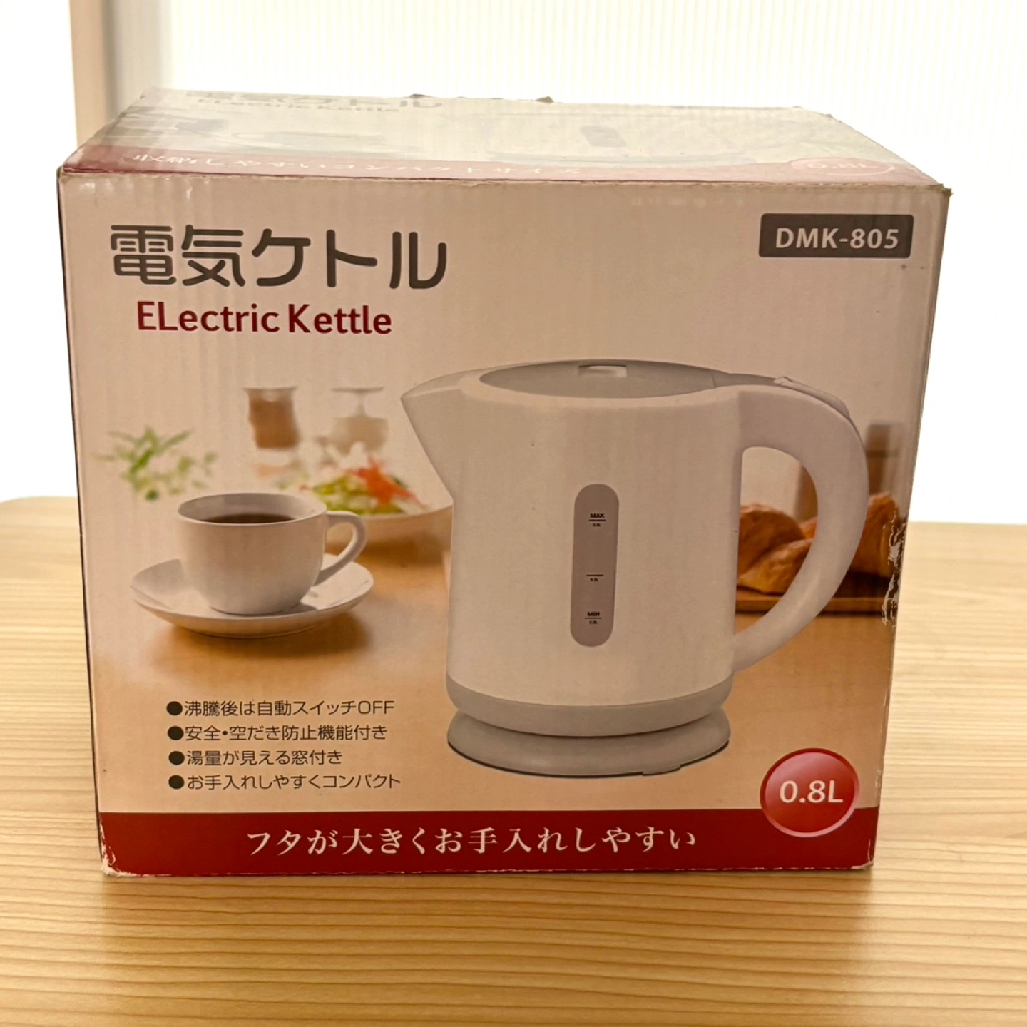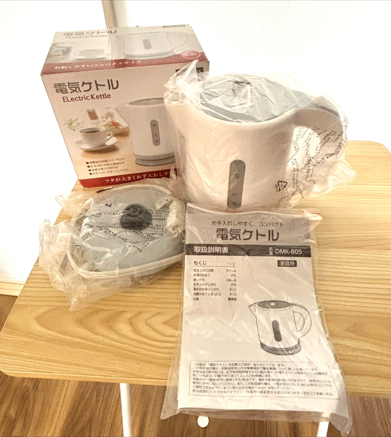 電気ケトル 0.8L ホワイト 丸隆 マルタカ DMK-805 ■ 仕様 沸騰後自動スイッチオフ、空だき防止 ■ サイズ 幅 123 × 奥行 215 × 高さ 180 mm ■ 重量 約 600g ■付属品 本体、コード、取扱説明書、外箱 ■ 状態 購入後、一度使用しました。 内部底のステンレスに水沸騰後のようなものが ございます。 箱、ビニール、取り扱い説明書全て揃っております。 詳細は画像でご確認ください。 受け渡しは、 旧くぬぎ台小学校(現在、コムュニティハウス) 西谷駅 鶴ヶ峰駅 からお選びください。 他にも引っ越し整理で色々出品しております。 複数ご購入で割引致します。 宜しけれ ばご覧ください。