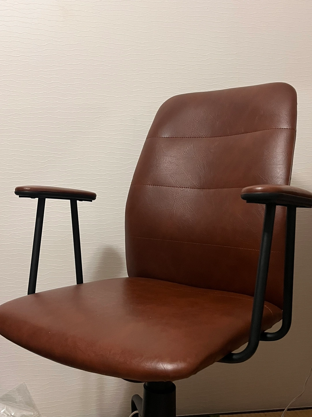 Amazonで購入した回転チェアです。 在宅ワーク用に購入しましたが、私の体に合わないためどなたかお使いいただける方を探しております。 デザインはビンテージ感があり、落ち着いたお部屋にとても馴染みます。 クッションを別で使っていたので、劣化等はほとんどないと思います。 他質問などございましたら、コメント頂けますと幸いです。