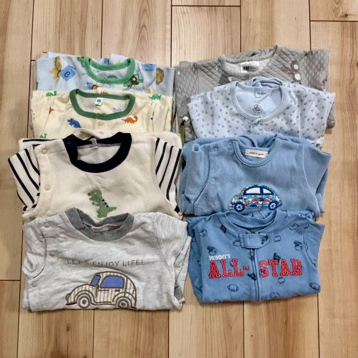 ベビー服のロンパース 8枚セットです。 ▼サイズ 70〜80 ▼ブランド PETIT BATEAU, Carter's, H&M,SENSEOFWONDER ,西松屋 自宅保育のため 無記名になります。 下記ご確認いただき 中古品にご理解いただける方のみご検討よろしくお願いいたします。 【詳細】 ・Carter's はほぼ使用感0の美品。(アメリカ土産 日本約¥2,000-程度) ・センスオブワンダーの水色車ロンパースは2wayオール仕様、足首ゴム無、美品。(定価¥7,590-) ・H&M 汚れ無し、若干使用感ありの良品。(定価¥2,500程度) ・プチバトーは肌着いらずの二重タイプです。胸元に若干シミがあるためスタイ使用推奨。現在販売中(定価¥7,700-) 他ロンパースについては汚れは見当たりませんが洗濯による毛羽立ち等使用感がある中古品になります。 まとめてのお取引希望です。 ◾️受け渡し希望場所◾️ 生麦駅改札(改札中可能) or セブンイレブン生麦4丁目店(駐車場あり) ご検討よろしくお願いいたします。 . . .
