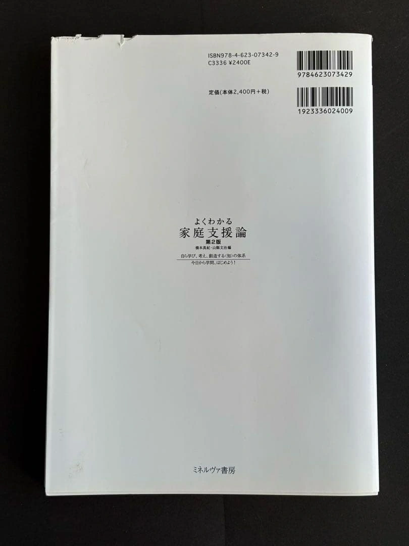 保育士専門学校で使用していたものです。全体的に使用感があり、付箋跡やメモが残っています。当時、愛ウサギと暮らしていたため、外側に齧った跡があります。表紙はボロボロですが、中身は使用に問題ありません。 出品中の教科書は2冊まででしたらおまとめ可能です。 - タイトル: よくわかる家庭支援論 - 著者: 橋本真紀・山原文治 - 出版社: 創成社 - 価格: 2400円(税別) - 言語: 日本語 中古品、自宅保管品ですので、気になさらない方お取引よろしくお願い致します。 ご覧いただきありがとうございます。 ご希望の方はお気軽にご連絡ください。