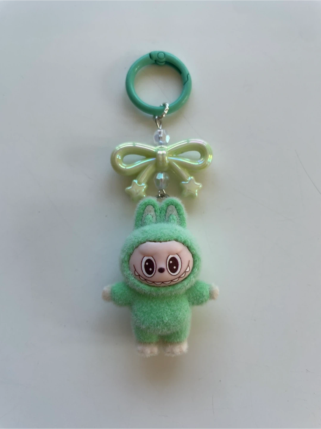 らぶぶキーホルダーです。リボンと星のチャームが付いていて、とても可愛らしいデザインです。 【カラー】グリーン系 【素材】布、プラスチック 【その他】キーホルダーとして、バッグやポーチなどにつけてお楽しみいただけます。 注意事項:自宅にて保管していました。 中古品であるということをご理解いただきご購入をお願いします。 よろしくお願いいたします。