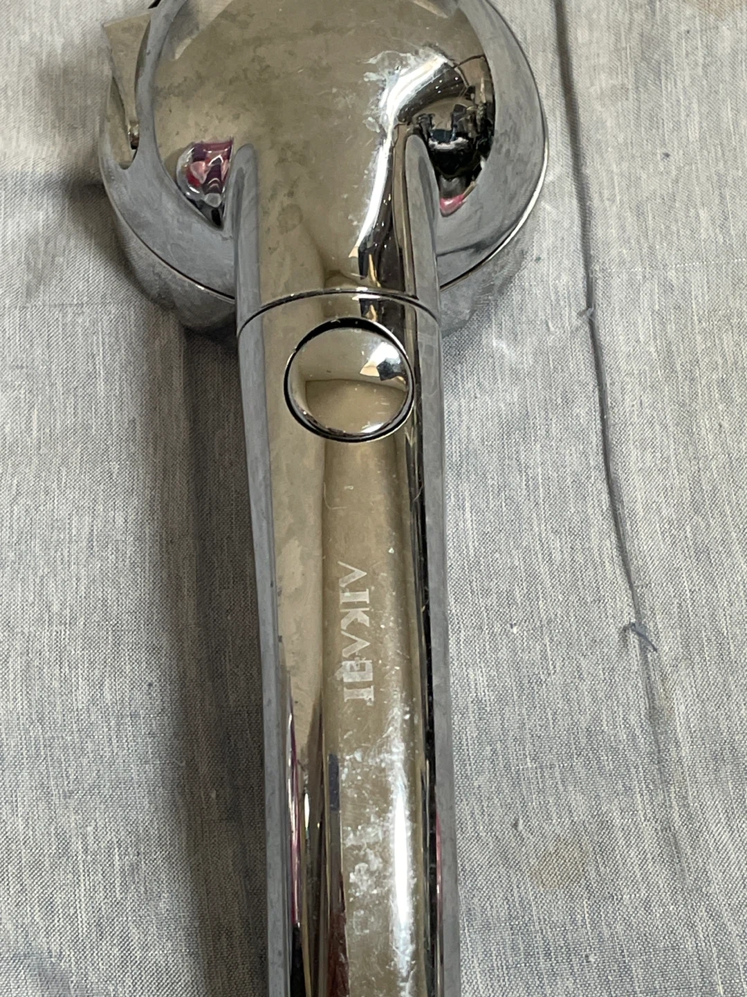 アイカイのシャワーヘッドです。家のシャワーヘッドは、旧式のため付け替えすることができず、購入後自宅保管していました。我が家には不要のものなので、出品しました。箱、ケースなどはありません。 ・カラー:シルバー ・表面に汚れあり 中古品であることご了承ください
