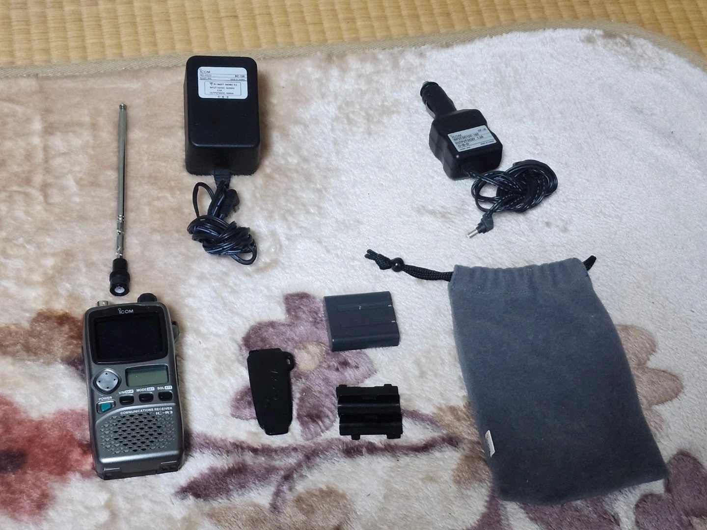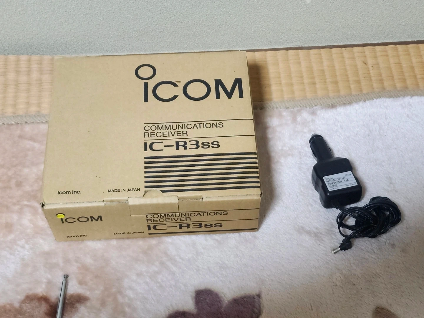 アイコムのコミュニケーションレシーバーです。 【情報】 ブランド:アイコム 商品名:コミュニケーションレシーバー 型番:IC-R3SS 【付属品】 箱、電源アダプター、充電池、説明書、ロッドアンテナ、シガレットライターケーブル 中古品であることをご了承ください。 電源アダプターの接触が良くないです。 なので充電池での動作は未確認です。 単3型エネループでFM放送が受信できる事を確認しましたが、すべての機能が動作する事を保証するものではありません。 別売りのCP-18 シガレットライターケーブルが付属します(未使用、動作未確認、箱・説明書無し)