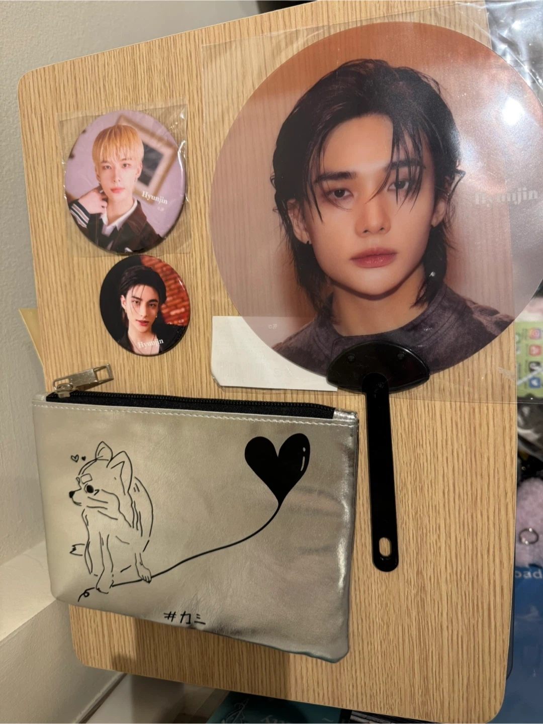 Stray Kidsのヒョンジン関連グッズのまとめ売りです。 ・缶バッジ2個 ・うちわ ・ポーチは袋から出しましたが未使用です 中古品であることご了承ください ストレスキッズ スキズ