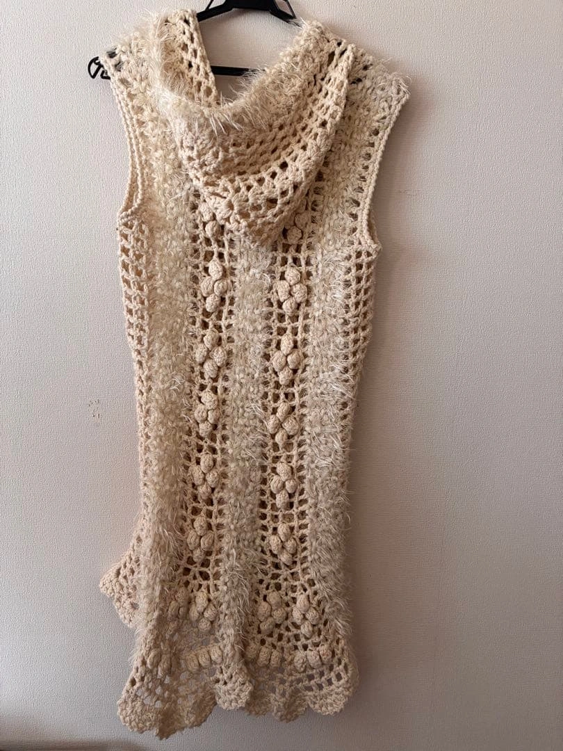 アイボリー フード付き ニットベスト