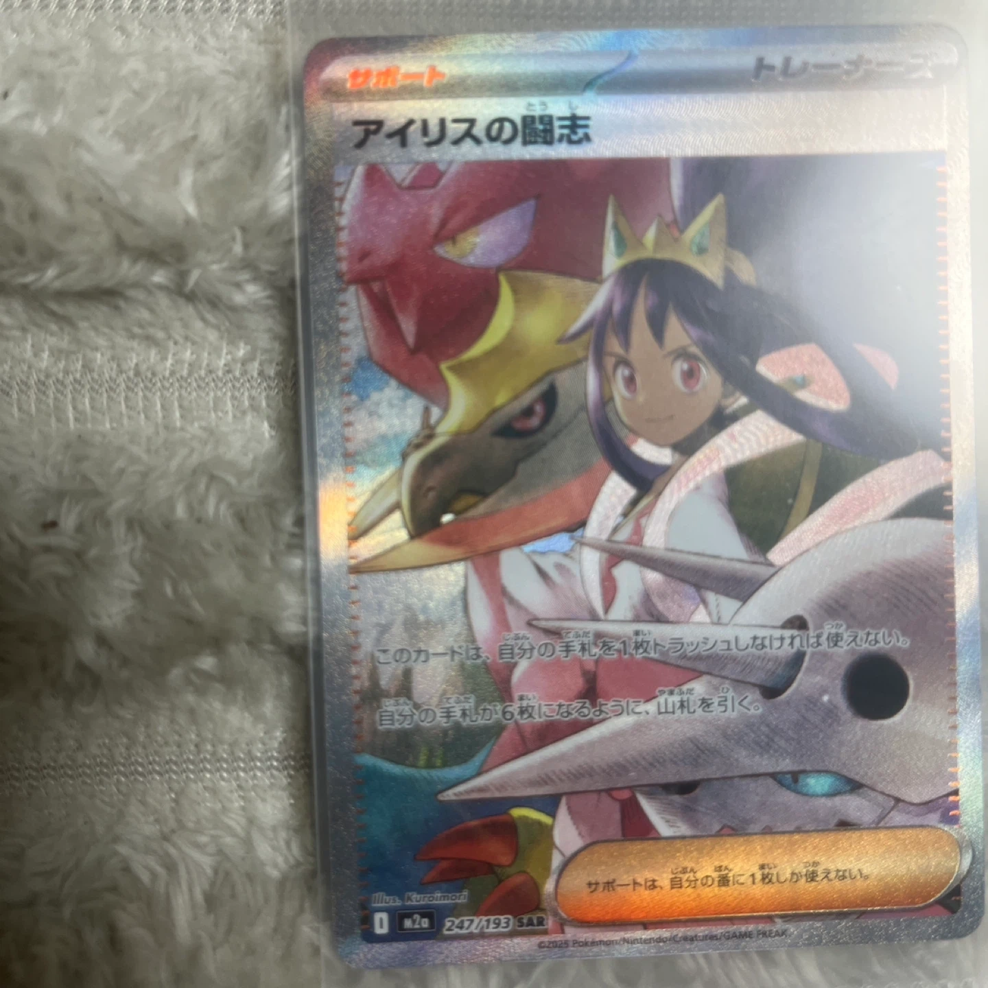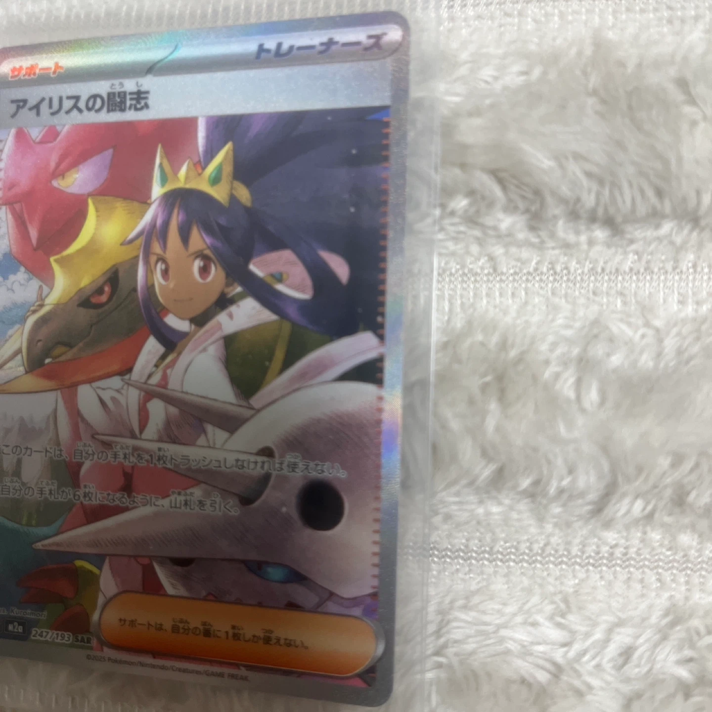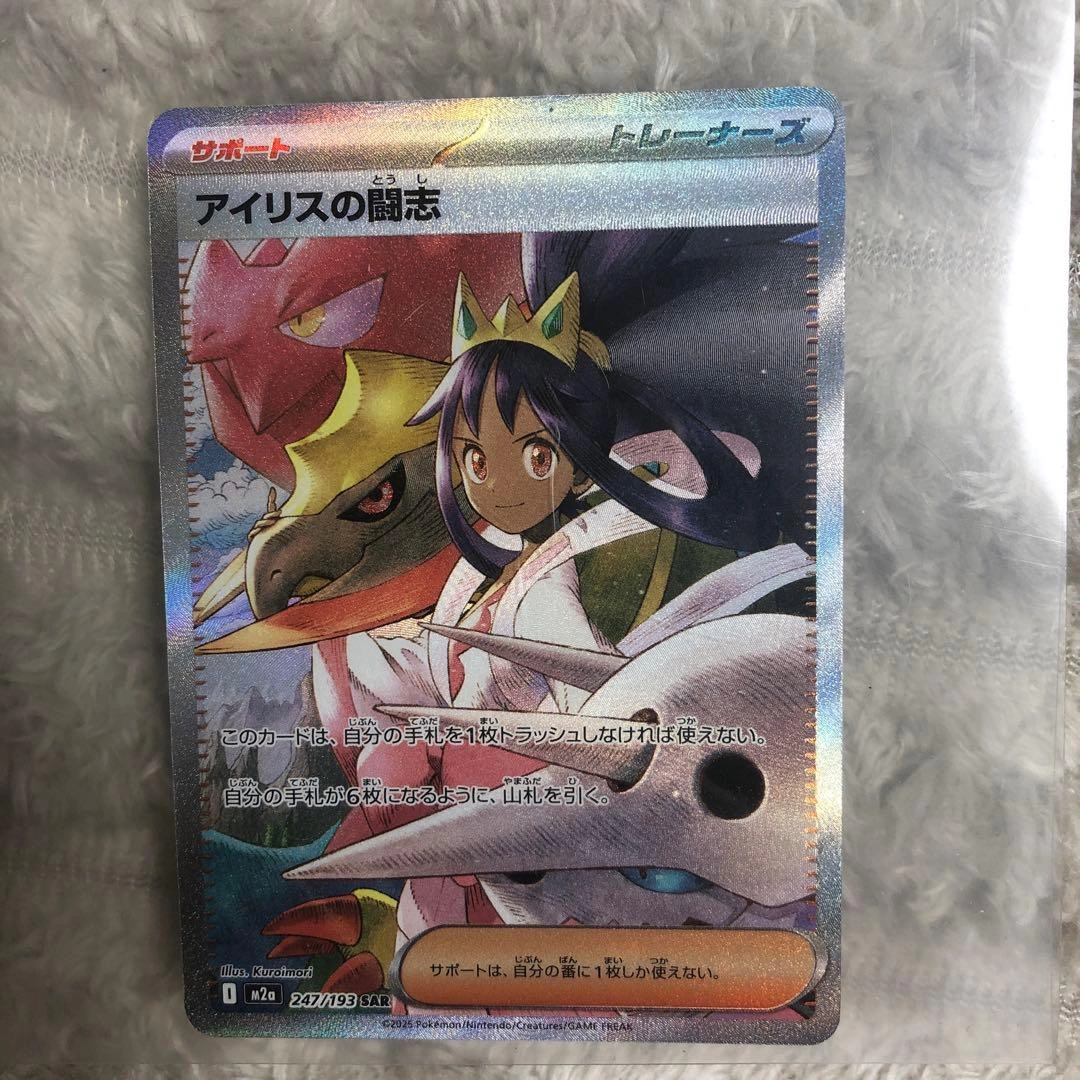 アイリスの闘志、SARトレーナーズカード、228/173。 - カード名: アイリスの闘志 - カードタイプ: トレーナーズ - レアリティ: SAR - 番号: 228/173 - セット名: S8a 開封後すぐに袋に保管しています。 状態は写真でご確認ください。質問があればコメントください。 未使用ですが、初期傷や白いスレがある場合があります。 ご覧いただきありがとうございます。 ご不明点はお気軽にお問い合わせください。