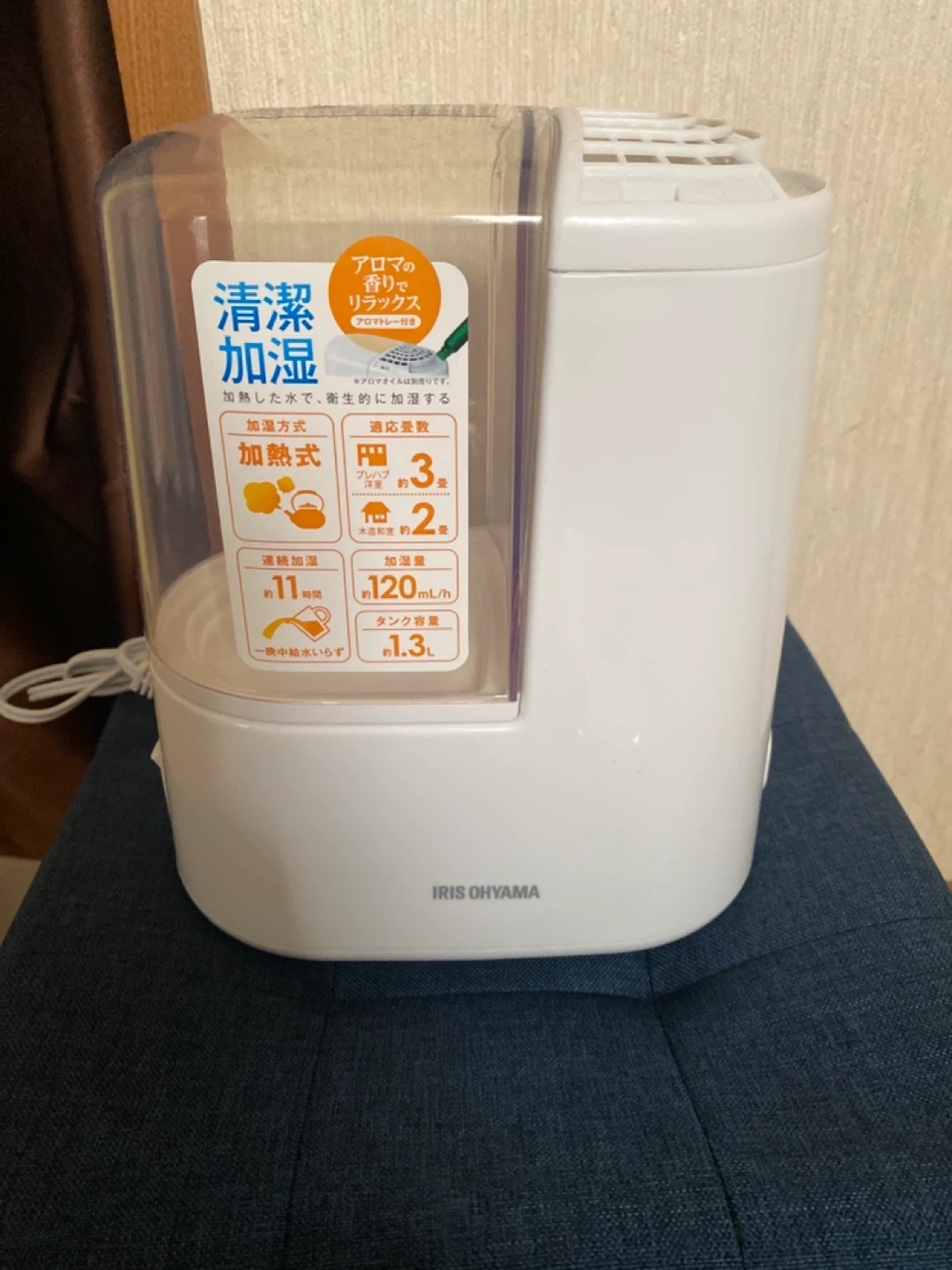 アイリスオーヤマの加湿器です 【情報】 ブランド:アイリスオーヤマ タンク容量:1.3L 連続加湿時間:約11時間 加湿量:120mL/h 加湿方式:加熱式 【状態】 使用感少なめ 中古品であることご了承ください 通電確認済みです        ワンシーズン使用しました 洗浄済み