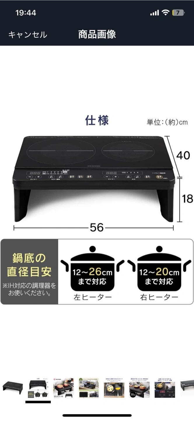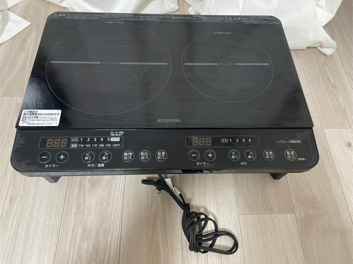 2023年に購入したアイリスオーヤマIHコンロです。 【購入時価格】2万円ぐらい 【サイズ】縦:18cm、横:56cm、奥行き:40cm 【傷などの状態】とくに目立った傷はありません。 【アピールポイント】 使用回数5回 状態良く問題なく使えます! 【希望取引場所】ファミリーマート川崎向ヶ丘の前 【希望取引日時】平日いつでも ドタキャンしない方、中古品のためサイズや状態などが目安であることをご了承いただける方のみお問い合わせください。 よろしくおねがいします。値下げ交渉承ります。