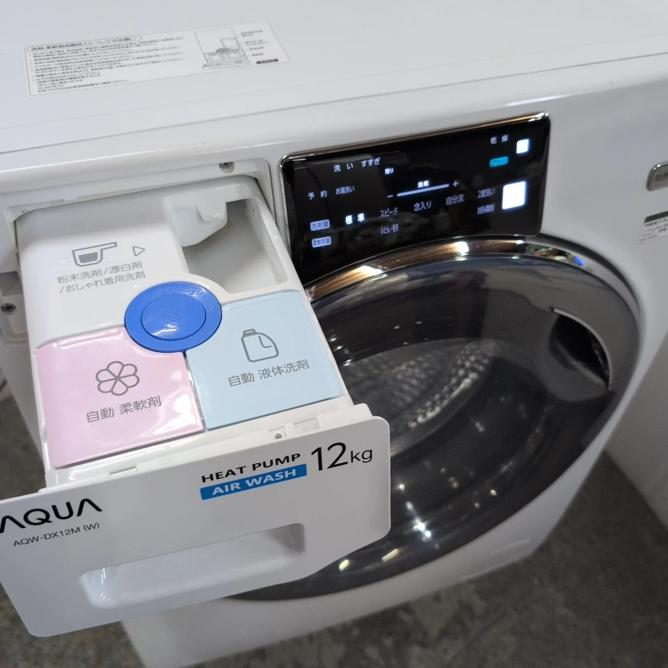 あたたかさアクアのドラム式洗濯乾燥機です。 【情報】 ブランド:アクア 型番:AQW-DX12M(W) ドラム式洗濯機 AQUA 洗い12キロ 乾燥6キロ aqw-dx12m サイズ 横595 奥行き685 高さ943 2021年 購入して4年ほど会社にて使いましたが脱水の音がうるさいので出品致します。 洗剤ケースを外したところのネジを強く締め付け過ぎたため割れがありますが使用に問題はございません。 神経質な方はご遠慮ください。 お決まりですが3Nでお願い致します。 洗い〜乾燥まで動作に問題はございません。 ご不明点があればお気軽にお尋ねください。