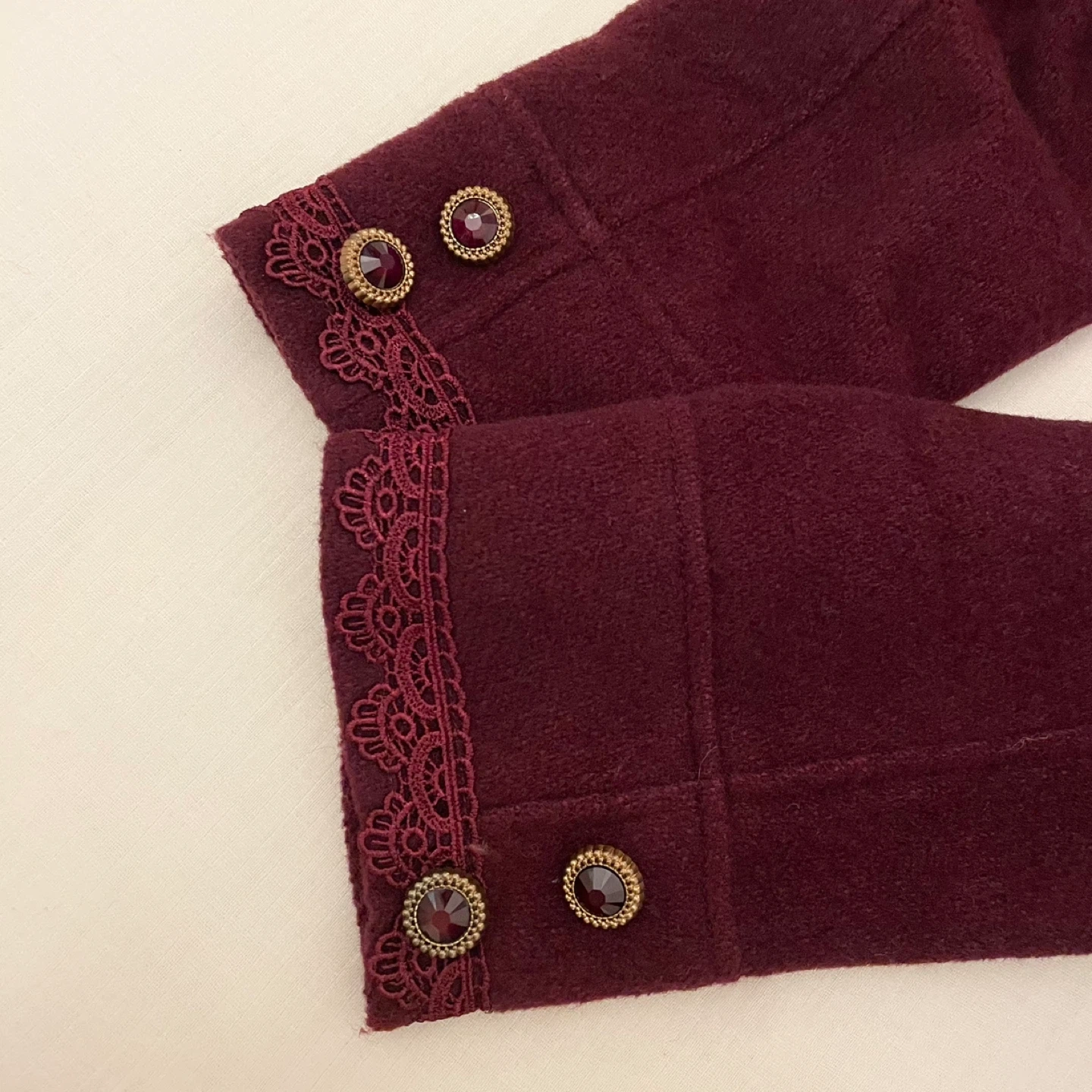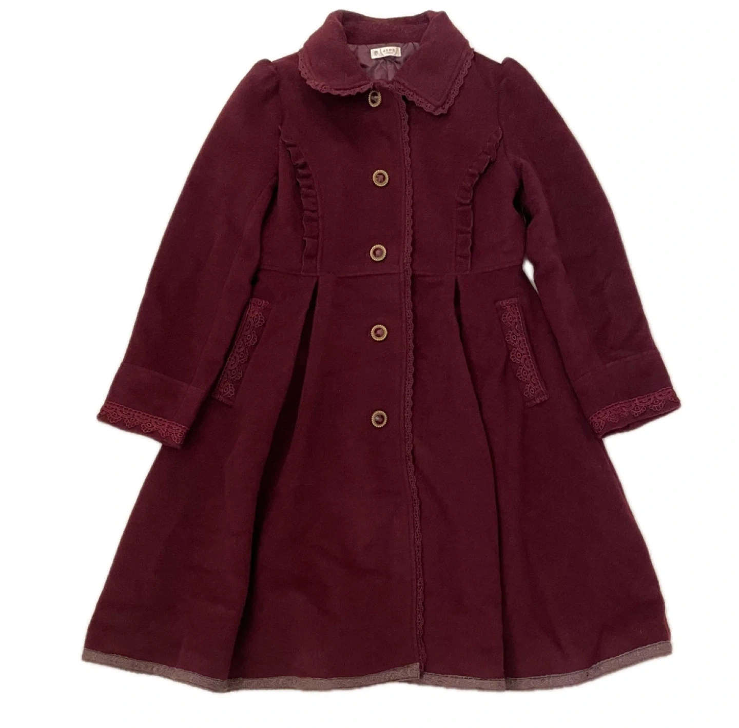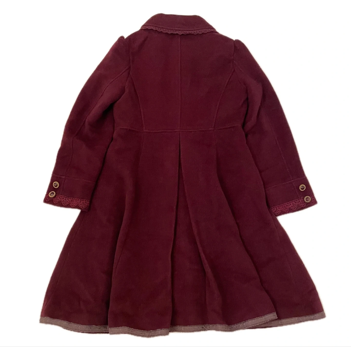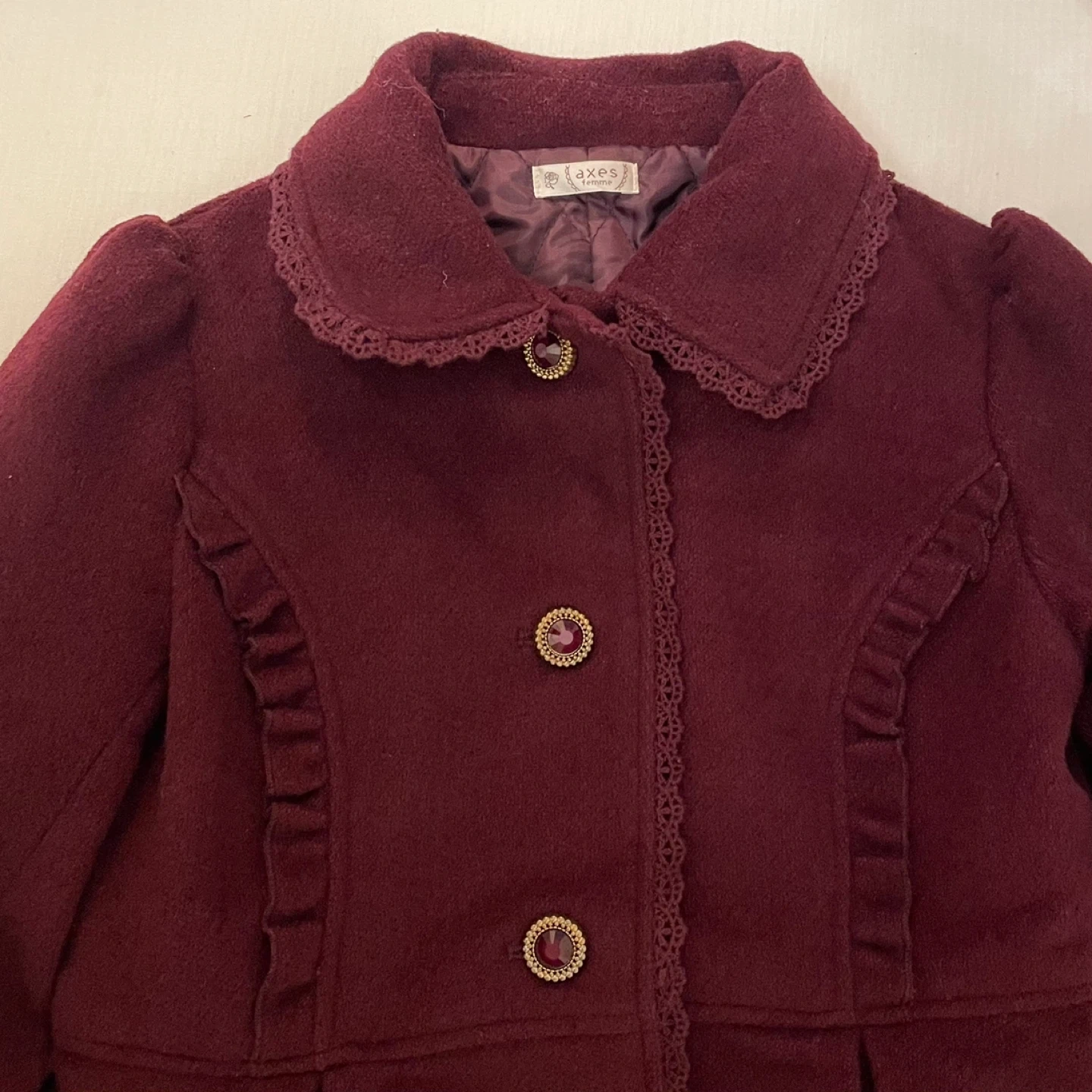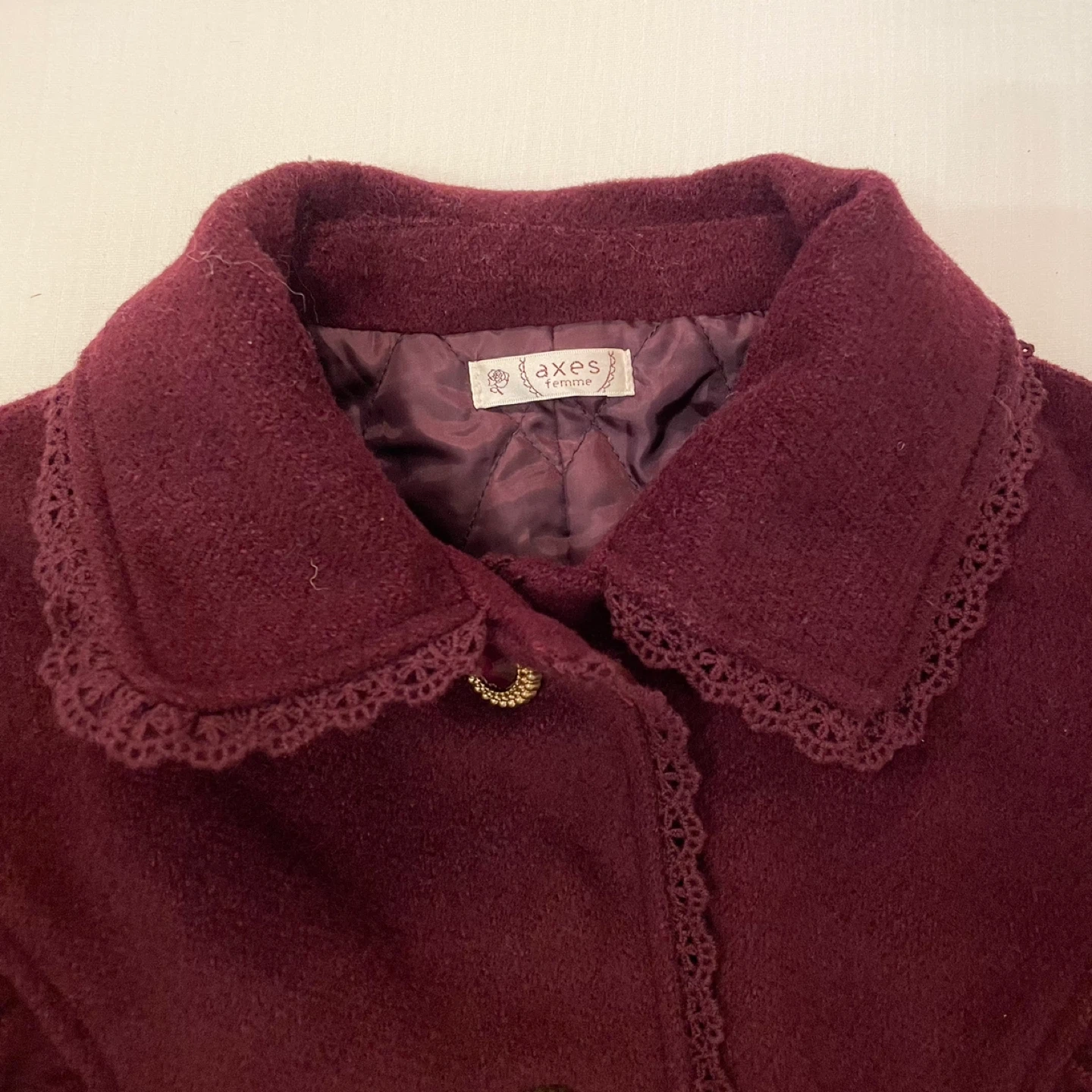axes femme アクシーズファムのロングコートです。axes femmeらしいヨーロピアンヴィンテージデザインです。ゴスロリスタイル、量産型、まるでお人形の様なフリル、レースをふんだんに使用した可愛らしい人気のコートです。お色はボルドー。 目立った汚れやダメージ等はなくまだまだお使いただけるお品です。 あくまでもUSED品のため、完璧をお求めの方、中古品にご理解のない方や神経質な方はご遠慮下さい。 サイズ M 着丈 95cm 肩幅 39cm バスト 48cm ウエスト 42cm 裾幅 112cm 袖丈 57.5cm ※平置き実寸です お手持ちのお洋服と比べて参考になれば幸いです。 ※着丈は肩ライン襟付け根から採寸しております。 ※服の形状により、採寸に若干の個人差が出ますので予めご了承下さい。 ※多少の採寸誤差お許しください。 ※お使いのモニターやスマートフォンの環境やスペックによって、実物の商品と画像の色合いや質感が異なって見える場合が御座います。 したがって、色が微妙に違う、思ってた質感ではない等の返品はお断りしております、ご了承ください。 ※素人検品のため見落としがある可能性も含めたお値段ですので、ご了承ください。