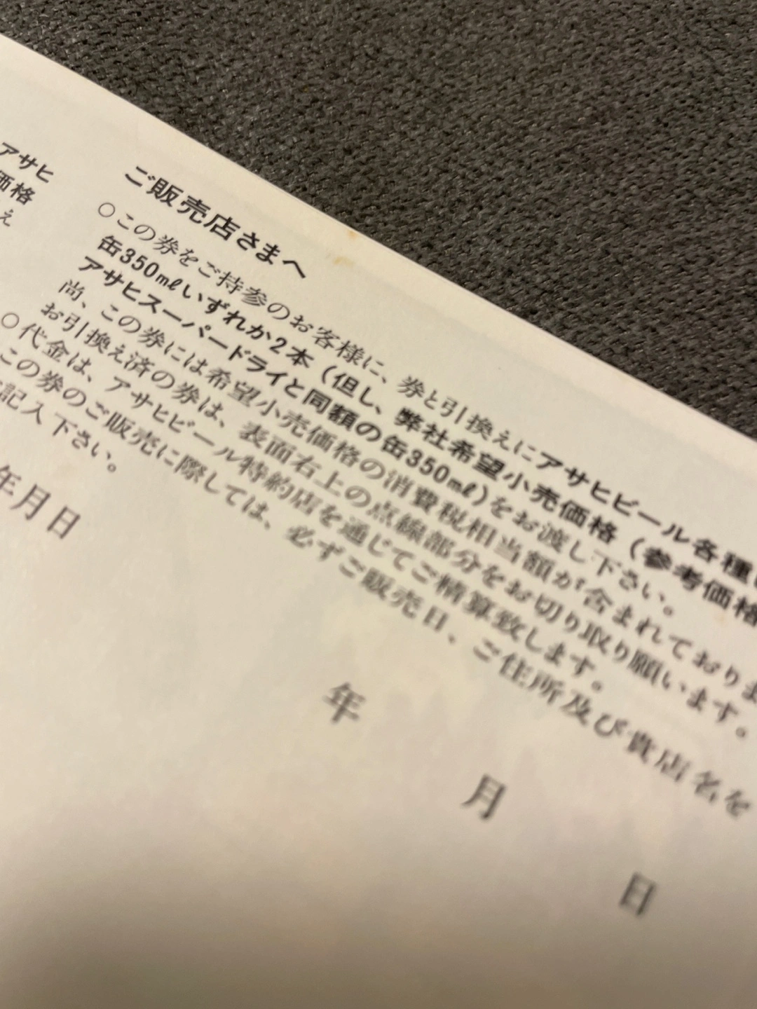 ・アサヒビールギフト券 ・缶350ml×2本
