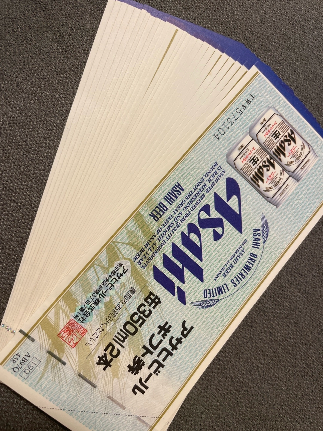 アサヒビール ギフト券 350ml×2本 25枚