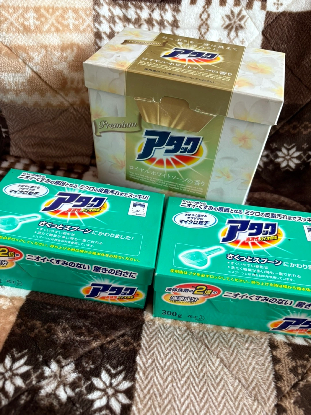アタックの洗濯洗剤です ・種類:粉末洗剤 ・300g(未使用)② ・1.5kg(約半分使用)① 中古品であることご了承ください 仕舞い込んだまま未使用の洗剤と使用途中で放置された洗剤 見た所、開封されてるものもサラサラの状態でしたので使用には問題なさそうです
