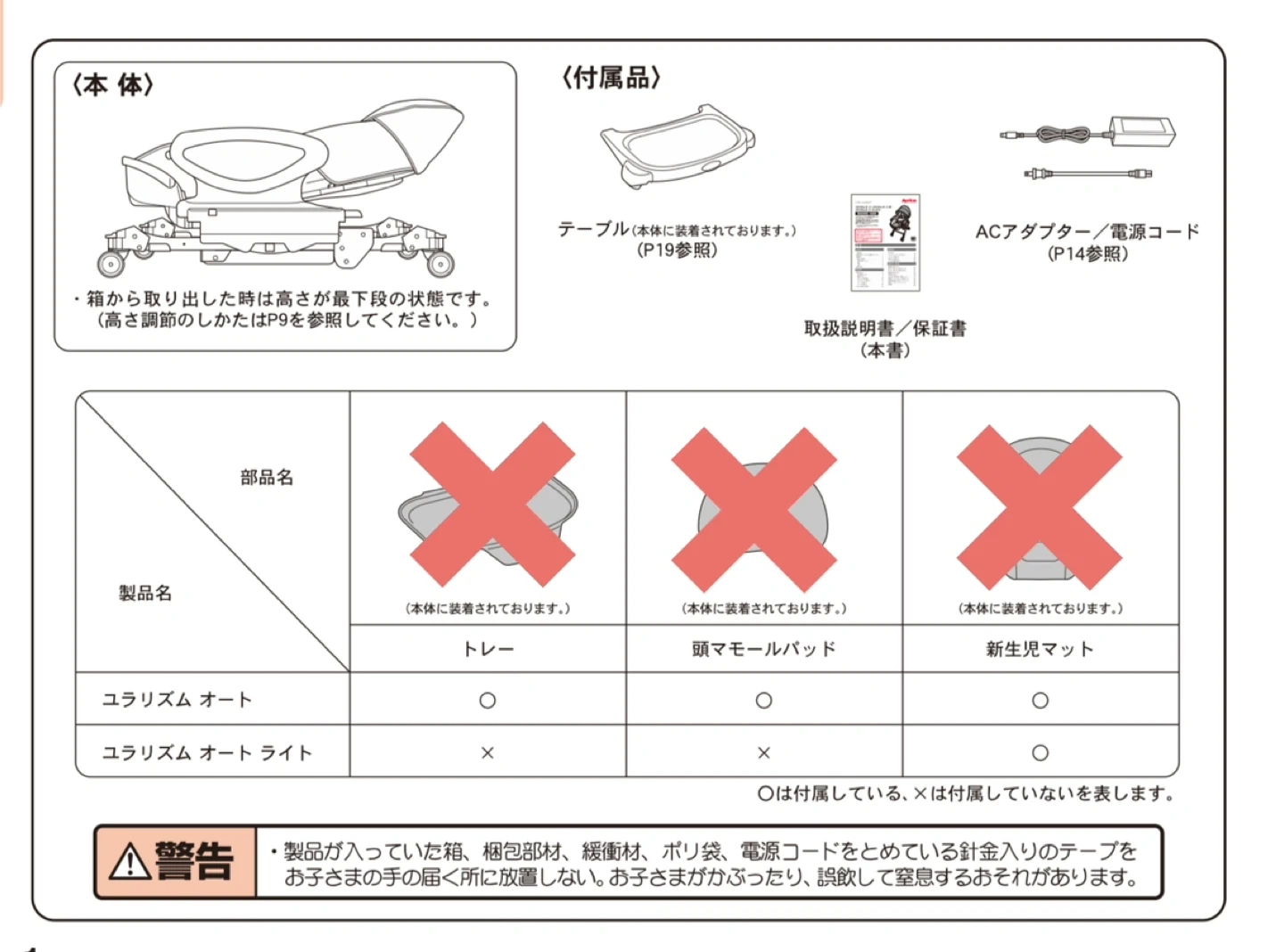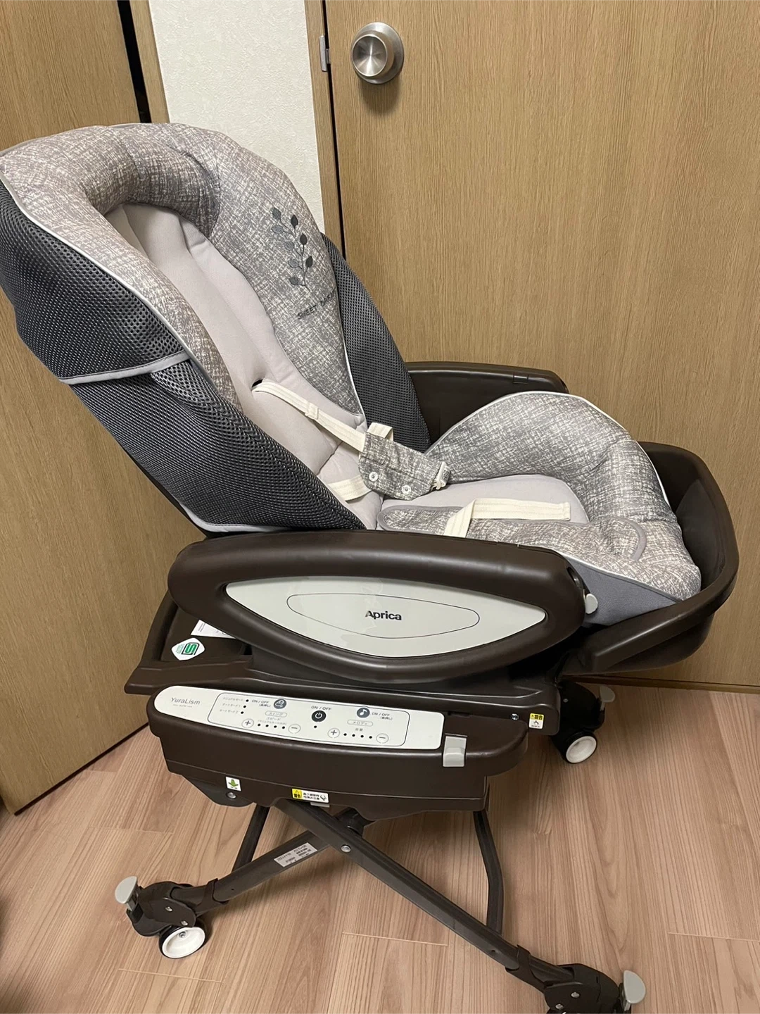 アップリカの電動スウィング式のハイローベッド&チェア「ユラリズム オート ライト」です。 ・ブランド:アップリカ ・製品名: ユラリズム オート ライト ・色:メランジグレー ・購入時期:2025年1月 ・付属品:本体、テーブル、ACアダプター、電源コード、取り扱い説明書(画像の6枚目をご参照ください) ・製品URL:https://www.aprica.jp/products/highlow/detail/auto/yuralism_auto_lite_ex/ ⚠️新生児マットは付属しませ ん 新生児マットは公式サイトで別途ご購入が可能です。 ⚠️お引き渡しは原則土日のみとなります。平日夜間もご相談可能です。 ⚠️引き渡し場所は哲学堂公園野球場前となります。大きな商品のため遠くへの運搬ができかねます。 主に電動バウンサーとして3ヶ月ほど使用していました。食事での使用はしていませんので目立った汚れはないかと思います。動作に問題ございません。 中古品であることをご了承ください。 商品についてご不明なことございましたら、お気軽にチャットでお問い合わせください🌷
