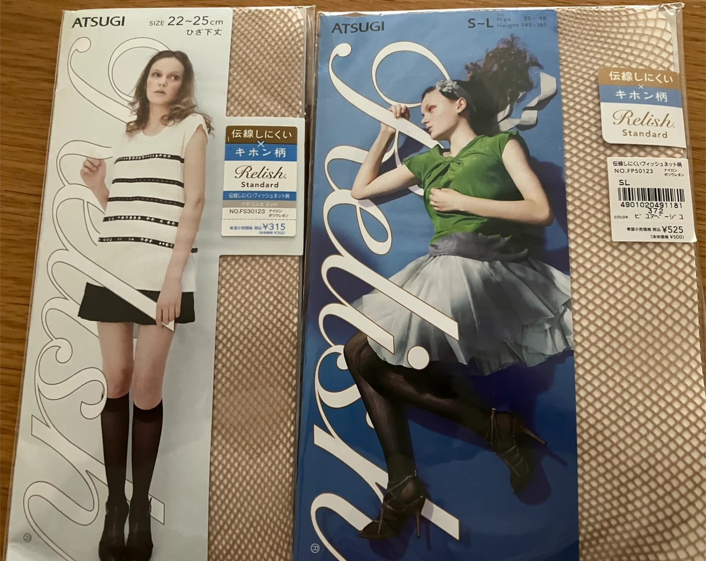 アツギのフィッシュネットタイツ2足セットです 【情報】 ブランド:アツギ 商品:フィッシュネットタイツ 【詳細】 ・左側:SIZE 22〜25cm ひざ下丈、NO.FS30123、希望小売価格 税込¥315 ・右側:S〜L、NO.FP50123、COLOR ピュアベージュ、希望小売価格 税込 ¥525 未使用ですが、長いことタンスで保管してましたのでご了承ください! 品川↔️蒲田、雪が谷大塚、平間、池上 この辺りでお渡しできたら嬉しいです。