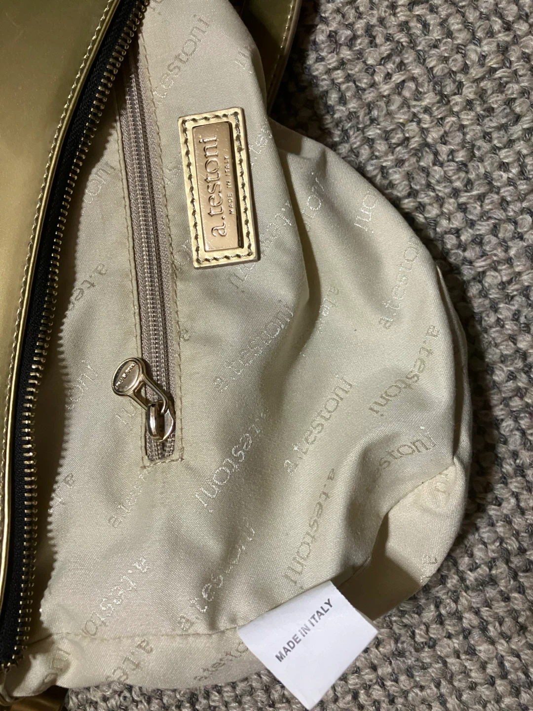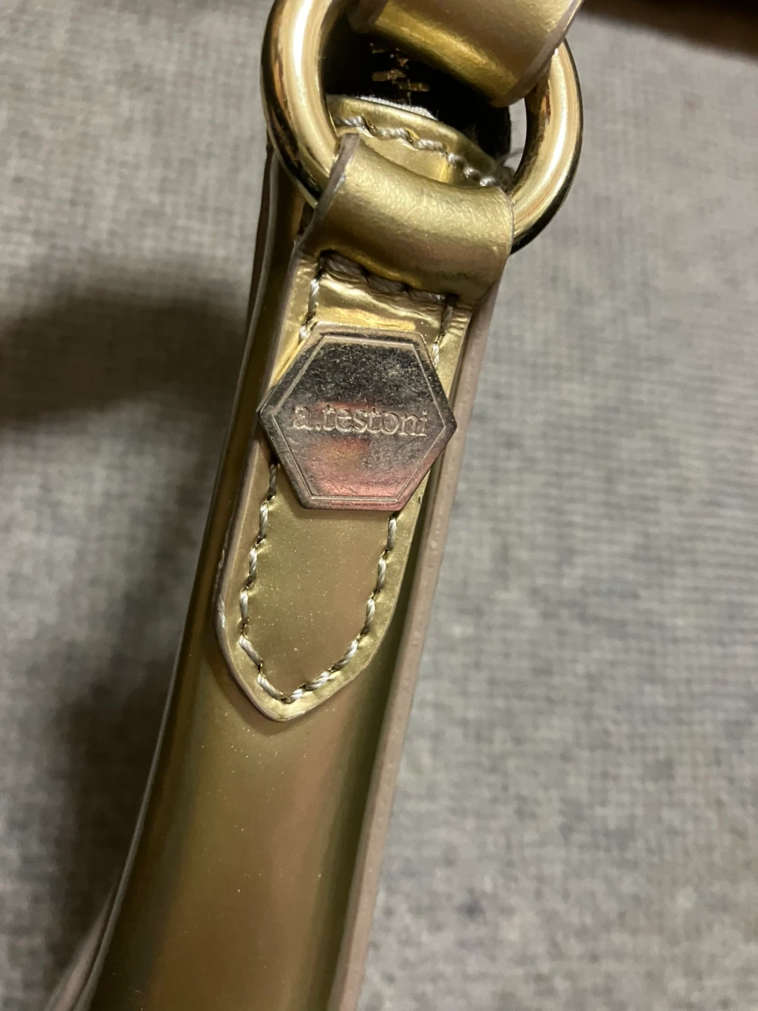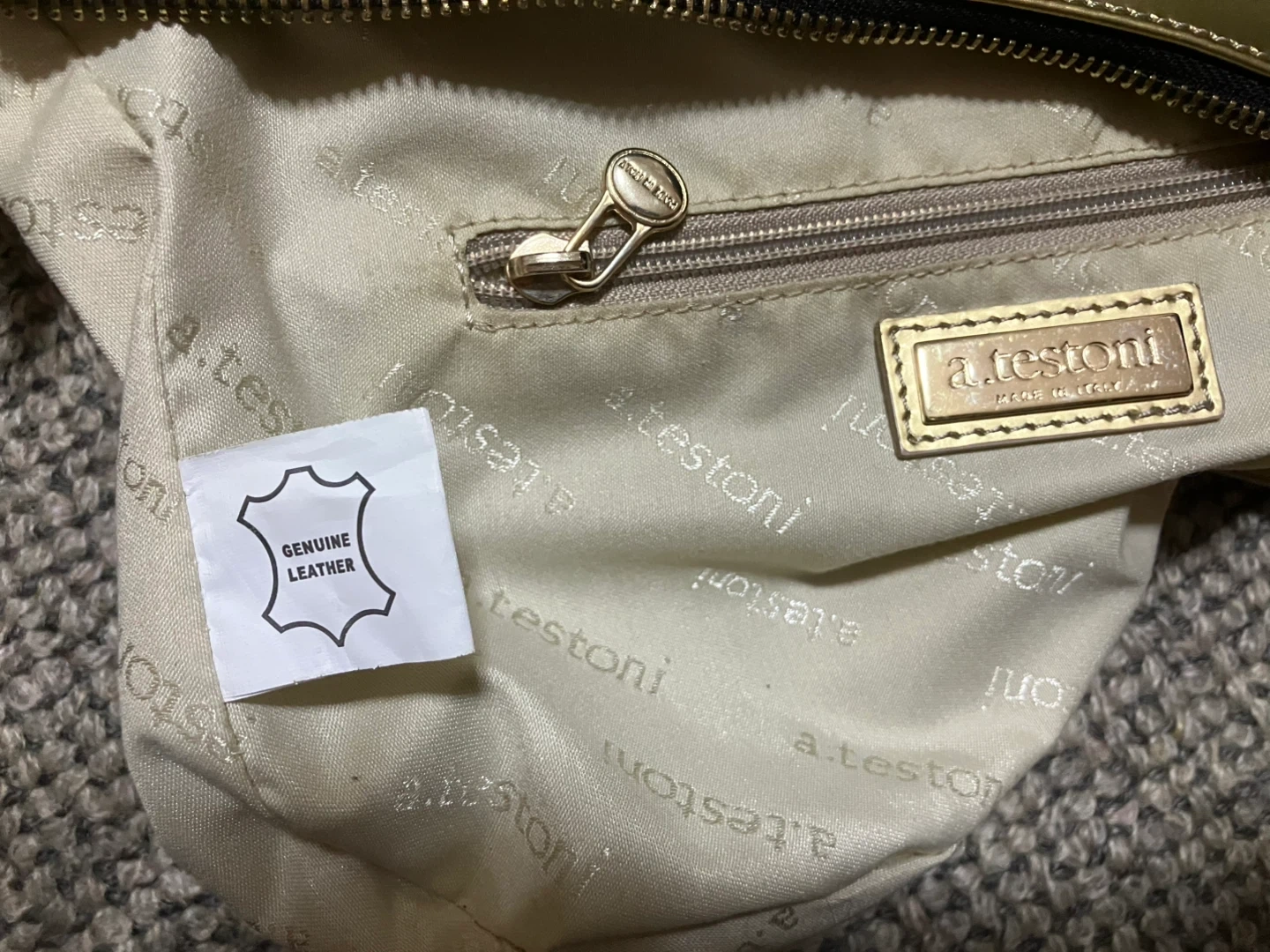 アテストーニのハンドバッグです。 落ち着いたゴールドカラー。 本革。表の革には小さなキズがいくつかある為お安くしています。 内側は汚れなどなくきれいです。 【情報】 ブランド:アテストーニ 素材:レザー カラー:ゴールド 【状態】 使用感、小さなキズが少しあります 中古品であることご了承ください