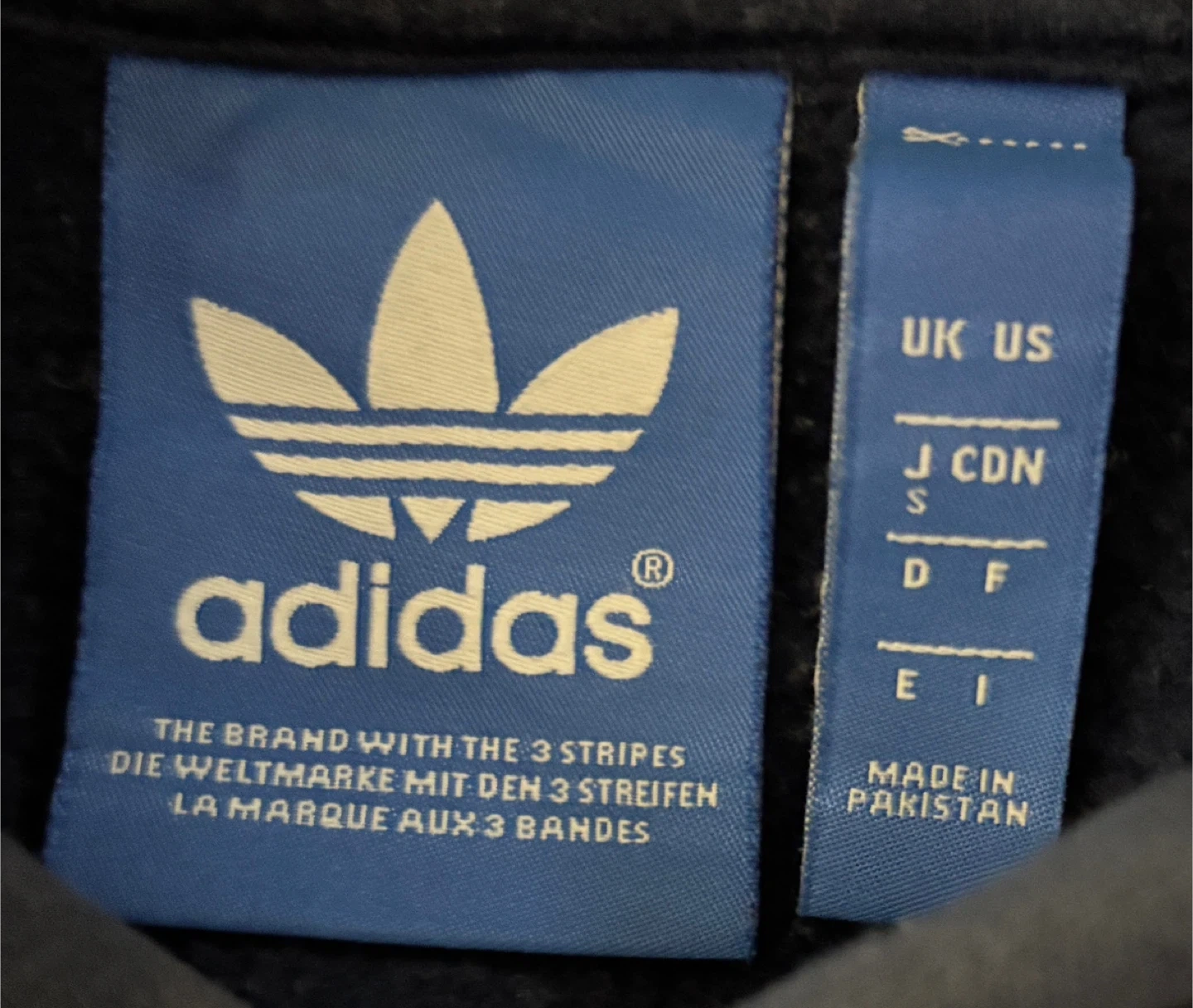 サイズ S メイドイン パキスタンとあります 当方152センチの普通体型で着用 子どもでも良いかと思います プリントの割れは一切ありませんが、お洗濯による劣化あります adidasの文字の真下に そんな目立ちはしないのですがシミ?なのか色が少しおちた?箇所ありました 生地全体の状態は良いのでまだまだ着用はできます!