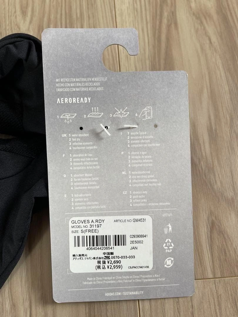 アディダス 防寒手袋 AERORDY GLOVES GM4531です。 カラー:BK GM4531(ブラック/ブラック/リフレクティブシルバー) サイズ:S 素材:シングルジャージー 品質:ポリエステル84%/ポリウレタン16% エアロレディ グローブです。寒い季節の外出時や、ワークアウトで手を暖かく保ちます。トレーニング中の汗を吸収・発散し、ドライで快適な状態をキープします。スマホ操作も可能です。 リサイクルポリエステル84% / ポリウレタン16%(シングルジャージー) 人差し指と親指の指先にタッチパネル対応の導電性素材を採用 リフレクターのディテール カラー...ブラック 手袋形...5本指 ご希望の方はお気軽にご連絡ください。