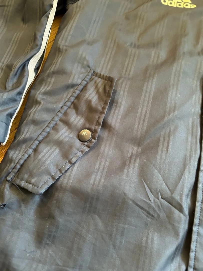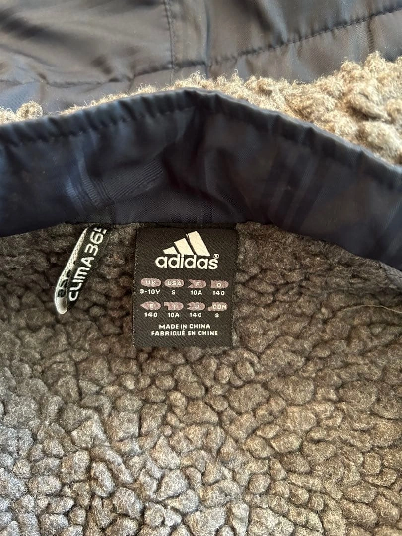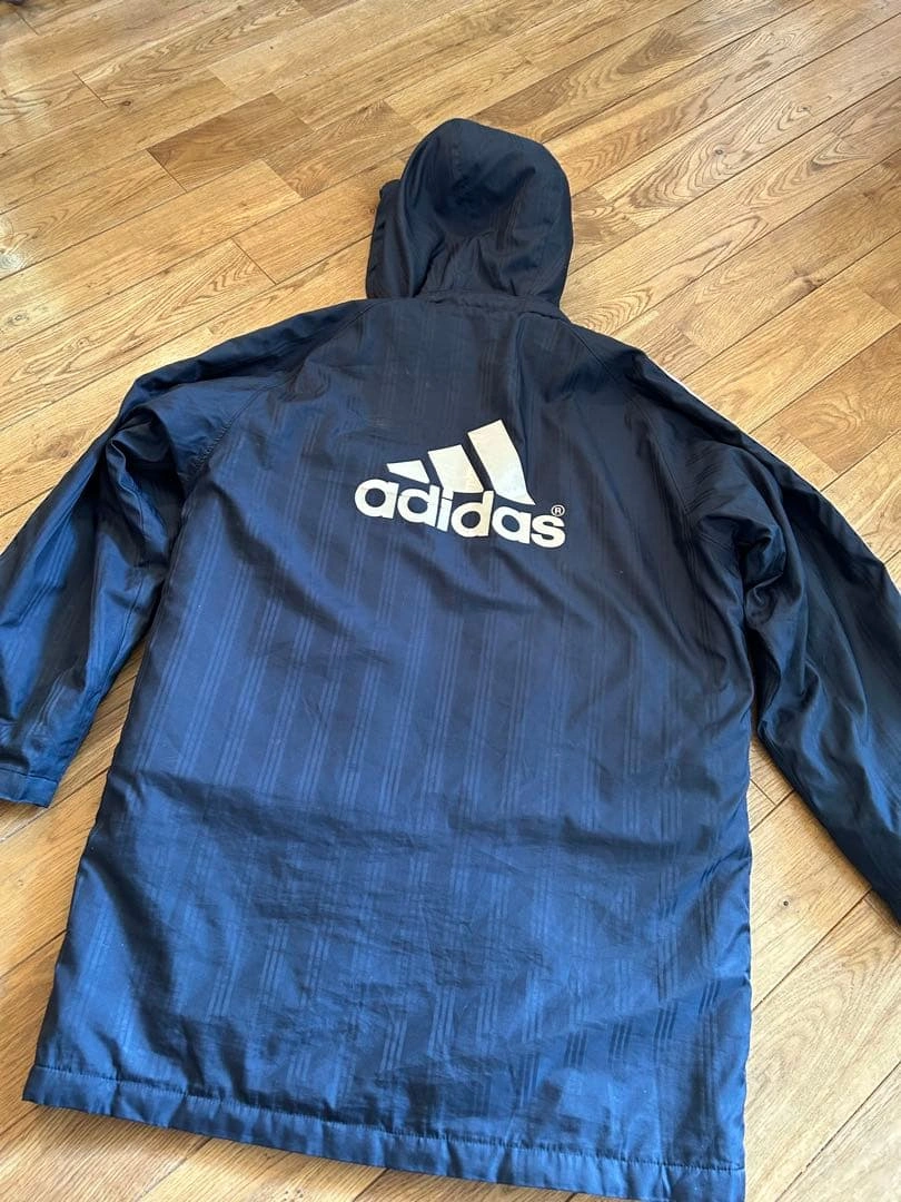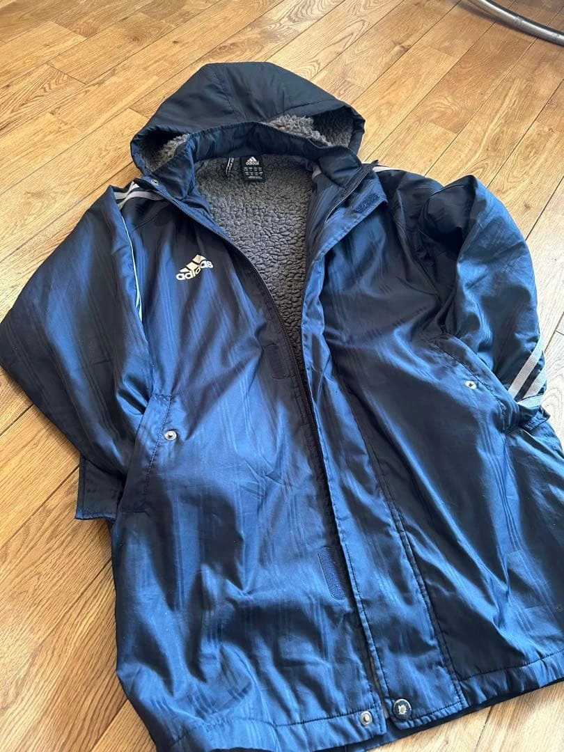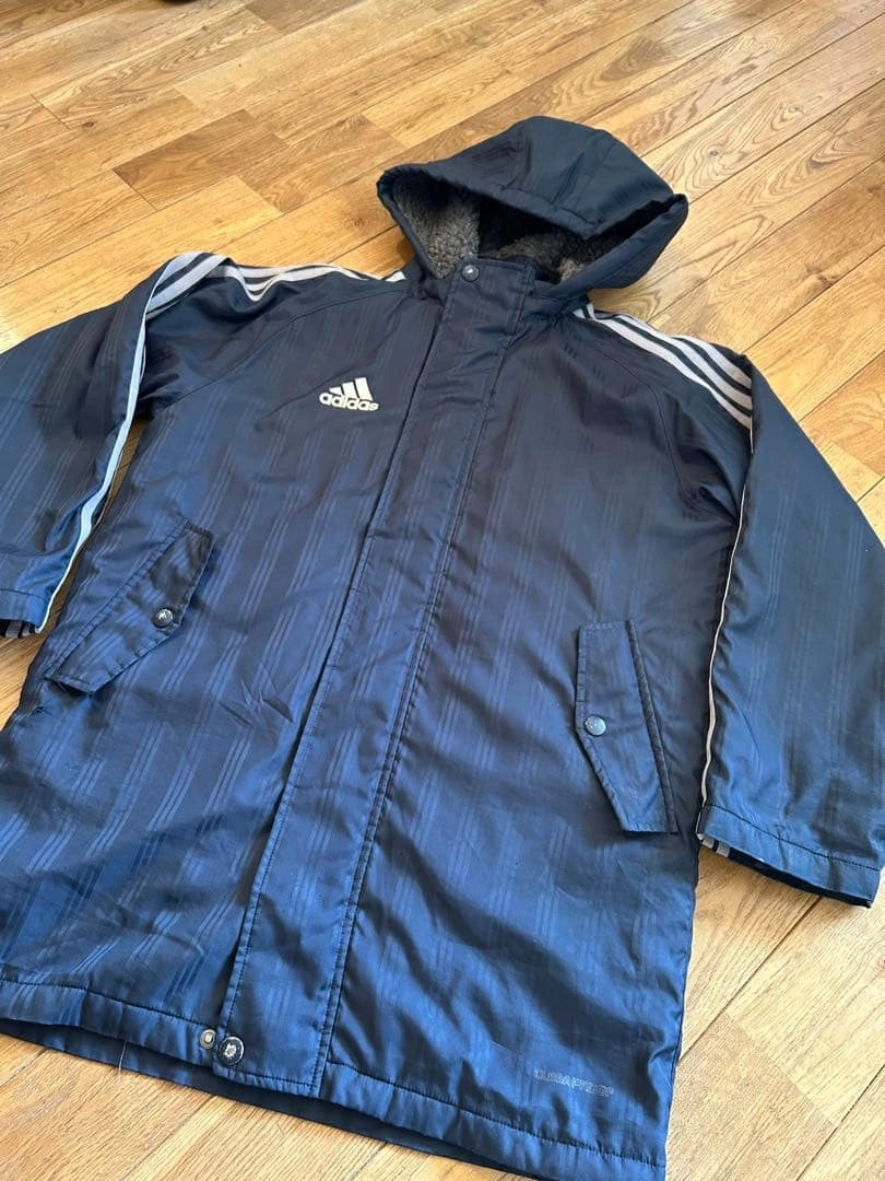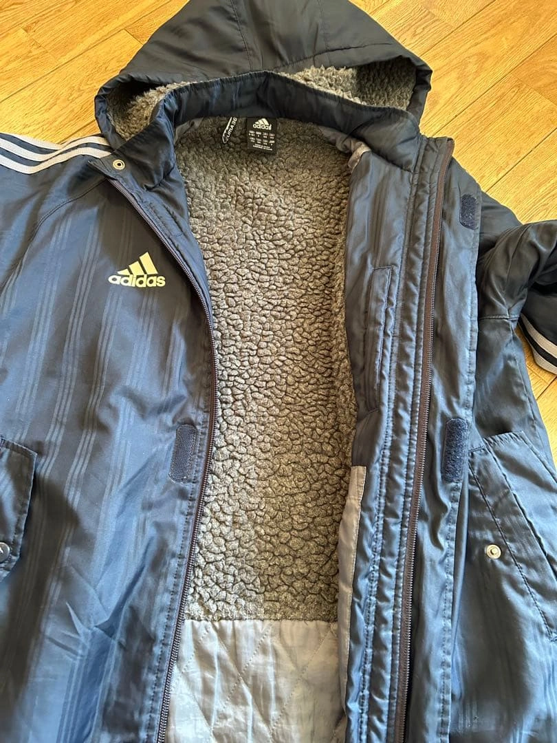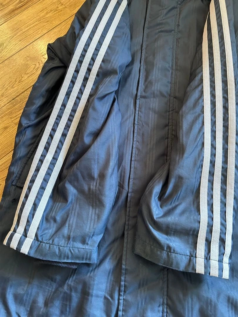 アディダスのベンチコートです。 息子が気に入ってサッカーの練習に着ていたので使用感、ボタンのハゲなどありますが、破れなどなく、ロゴもそんなに剥がれておらずまだまだ気持ちよく着ていただけると思います。 子どもが使用したものですので、画像をご確認いただきご理解の上ご購入くださいませ。 サイズ 140cm ダウンタイプと違って比較的作りがゆったりしているため、重ね着もしやすく、裏起毛が温かかったようです。 ※受渡し場所はご相談させてくださいませ。