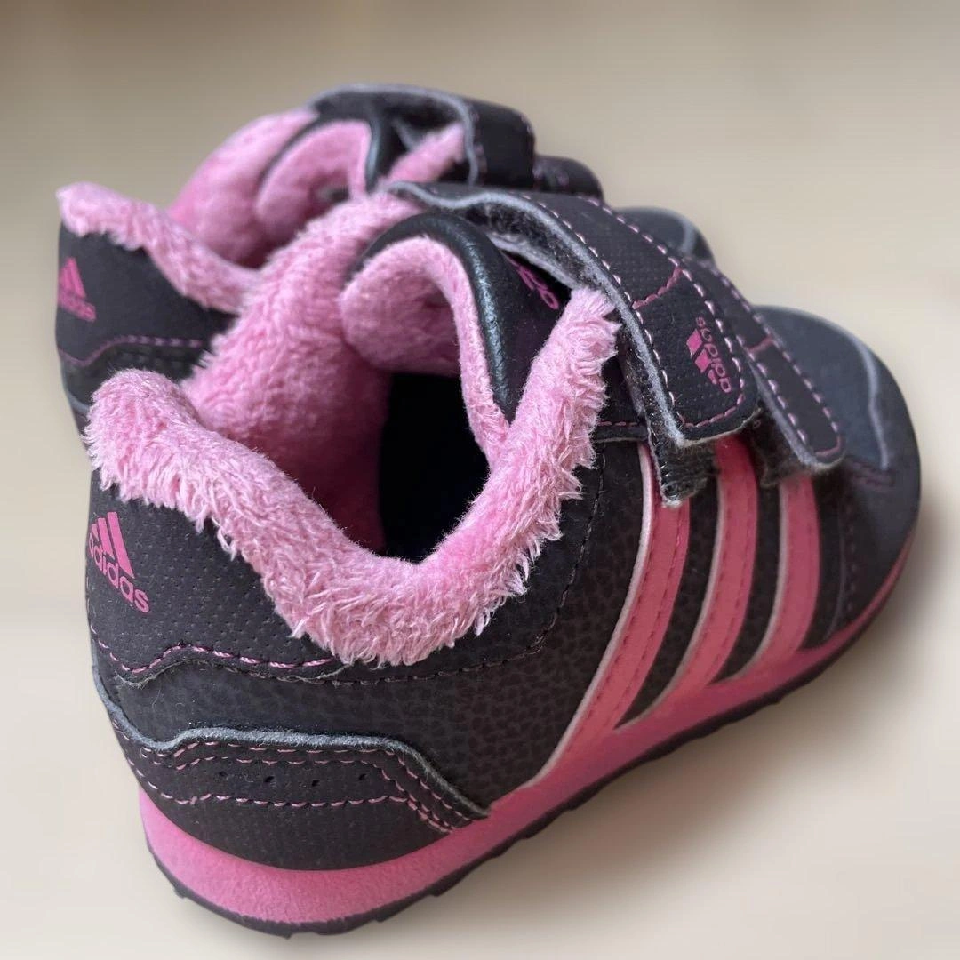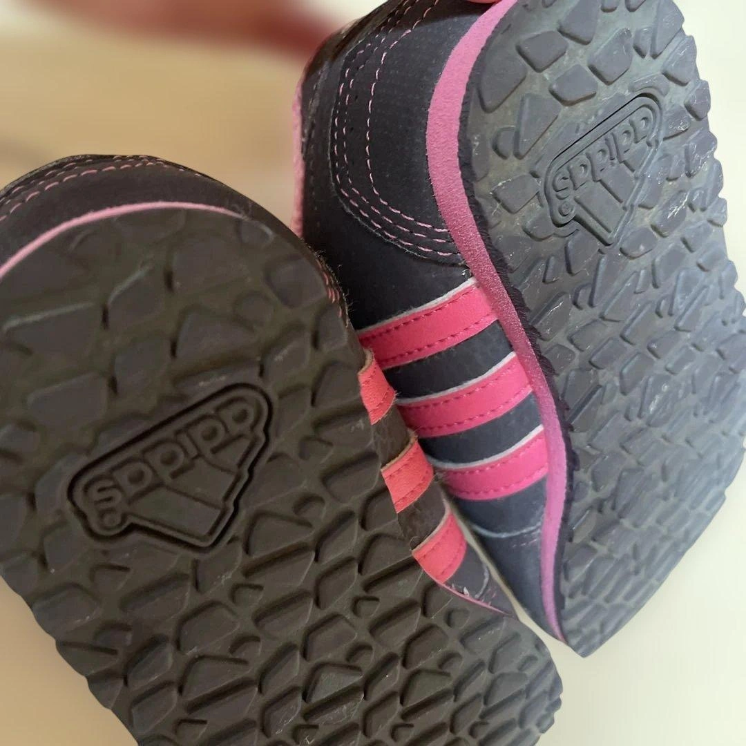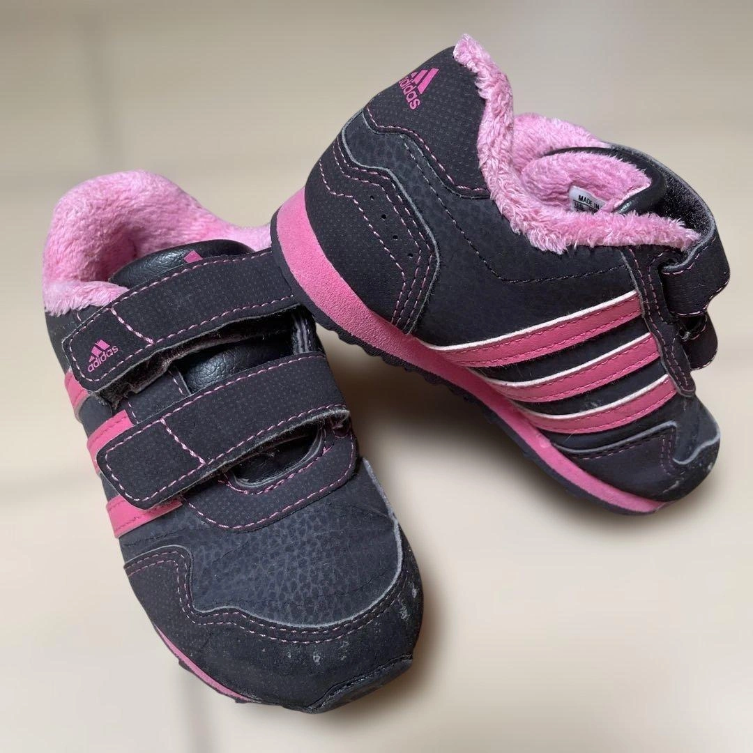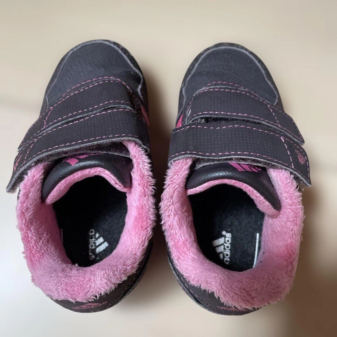 アディダス、ブラウンとピンクのベルクロストラップ付きベビーシューズです。内装はファー付きで快適です。 あまり使用せずサイズアウトしました。 ソールも比較的綺麗だと思いますが、つま先部分に少し傷があります。元々通気穴があり、使用中にそこだけ傷がついたようで、白っぽくなっております。画像にてご確認下さい。破れなどはありません。 子供シューズ、13.5cmです。 ご希望の方はお気軽にご連絡ください。