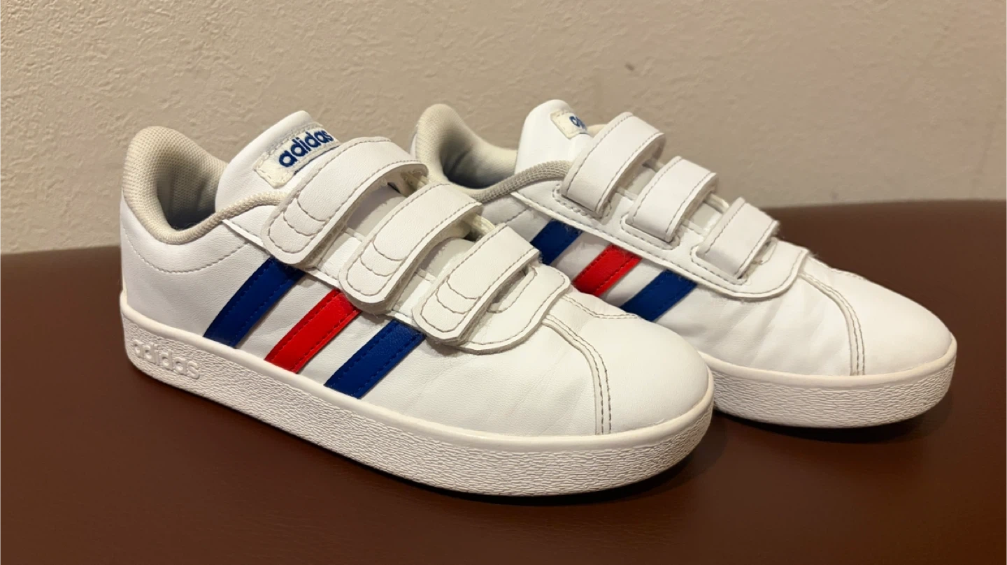 ADIDAS VL COURT 2.0 I (19cm) - トリコロールカラー ✅ 【ブランド名】 アディダス (adidas) ✅ 【商品名】 VL COURT 2.0 I ✅ 【カラー名】 'WHITE ROYAL BLUE VIVID RED' * (日本語表記:クラウドホワイト / ロイヤルブルー / ビビッドレッド) * 人気トリコロールカラー! (白・青・赤) ✅ 【サイズ】 19cm ✅ 【状態】 10回程度着用 【商品詳細】 アディダス VL COURT 2.0 I のベビー・キッズ用スニーカー、19cmです。 スケートシューズからインスパイアされたカジュアルでクラシックなデザインに、白・青・赤のトリコロールカラーが映える人気のモデルです。どんな服にも合わせやすいデザインでありながら、足元でしっかりと個性を出せます。 * 特徴: * 着脱しやすい面ファスナー(マジックテープ)タイプです。 * クッション性があり、お子様の日常使いに最適です。 * どの角度から見てもおしゃれな配色で、大変人気があります。 * 状態について: 10回程度の着用で、特に目立つ汚れやソールの減りはありません。インソールもきれいです。 * 出品理由: サイズアウトのため、綺麗なうちに出品します。 【ご確認事項・お願い】 * 即購入OKです。 * サイズは19cmですが、お子様の足の形には個人差がございますので、必ずお手持ちのシューズのサイズをご確認ください。 * 中古品である点、ご理解の上でのご購入をお願いいたします。 * ご購入後の返品・交換はできませんので、ご不明な点はお気軽にご質問ください。