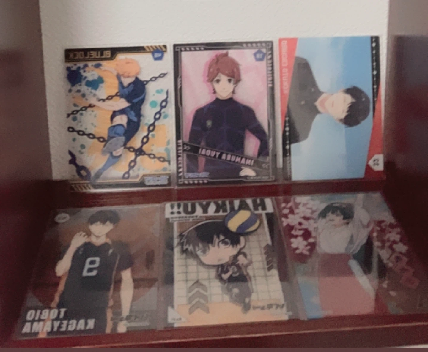 アニメグッズのカードまとめです。   ・種類:アニメコレクションカード   ※いろんなアニメが混ざってます ・状態:よく見ると多少の傷あり ・キャラ:左から国都 英一郎(忘却バッテリー)、今村遊大(ブルーロック)、國神錬介(ブルーロック)、亜也子(逃げ上手の若君)、影山飛雄×2(ハイキュー) 画像粗くてすいません💦 ご不明点があればお気軽にお尋ねください。