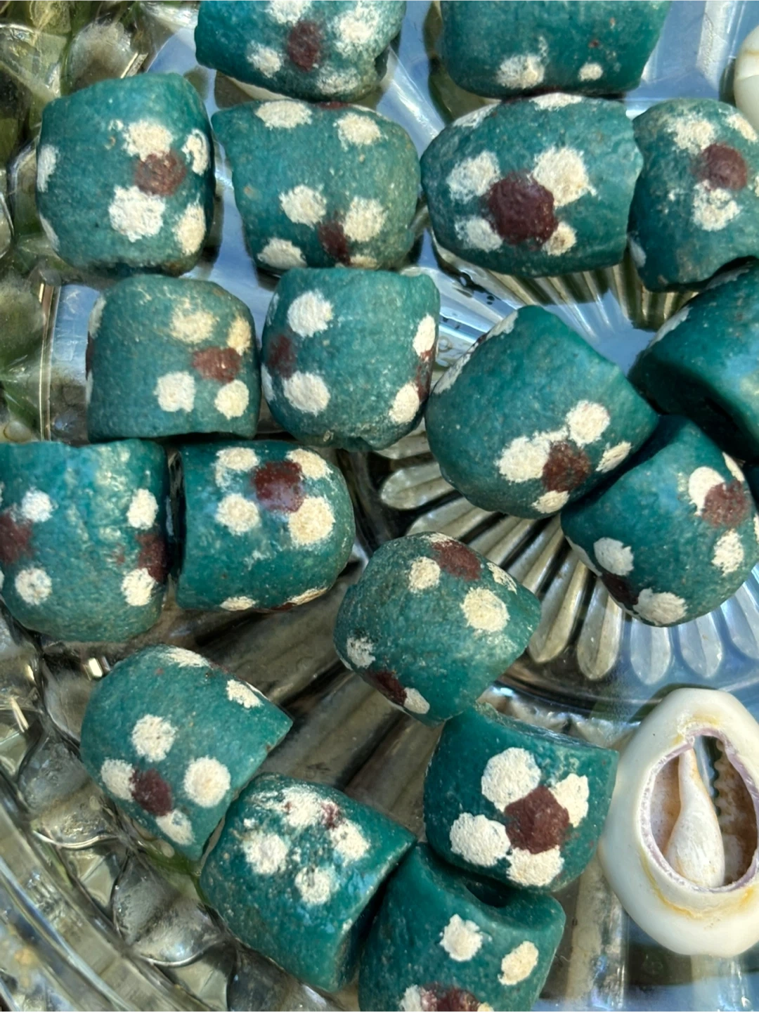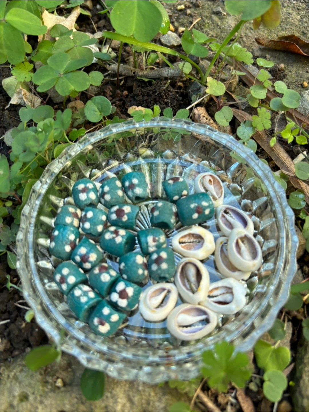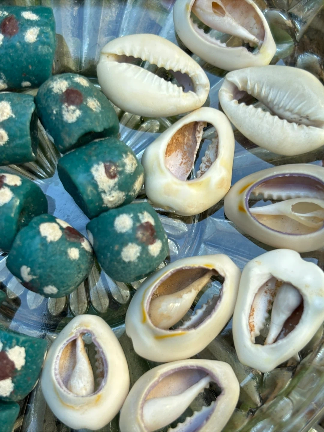 アフリカンビーズ(手描き&貝殻) アクセサリー作家さんでナチュラル系のビーズのパーツを使う方に差し上げます。 貝殻のビーズはカットした事で見えてくる造形が面白いビーズです。 ビジューを貼り付けてペンダントトップに使っても面白いと思います。 ・緑色の模様入りビーズ ・白い貝殻のビーズ ご不明点があればお気軽にお尋ねください。