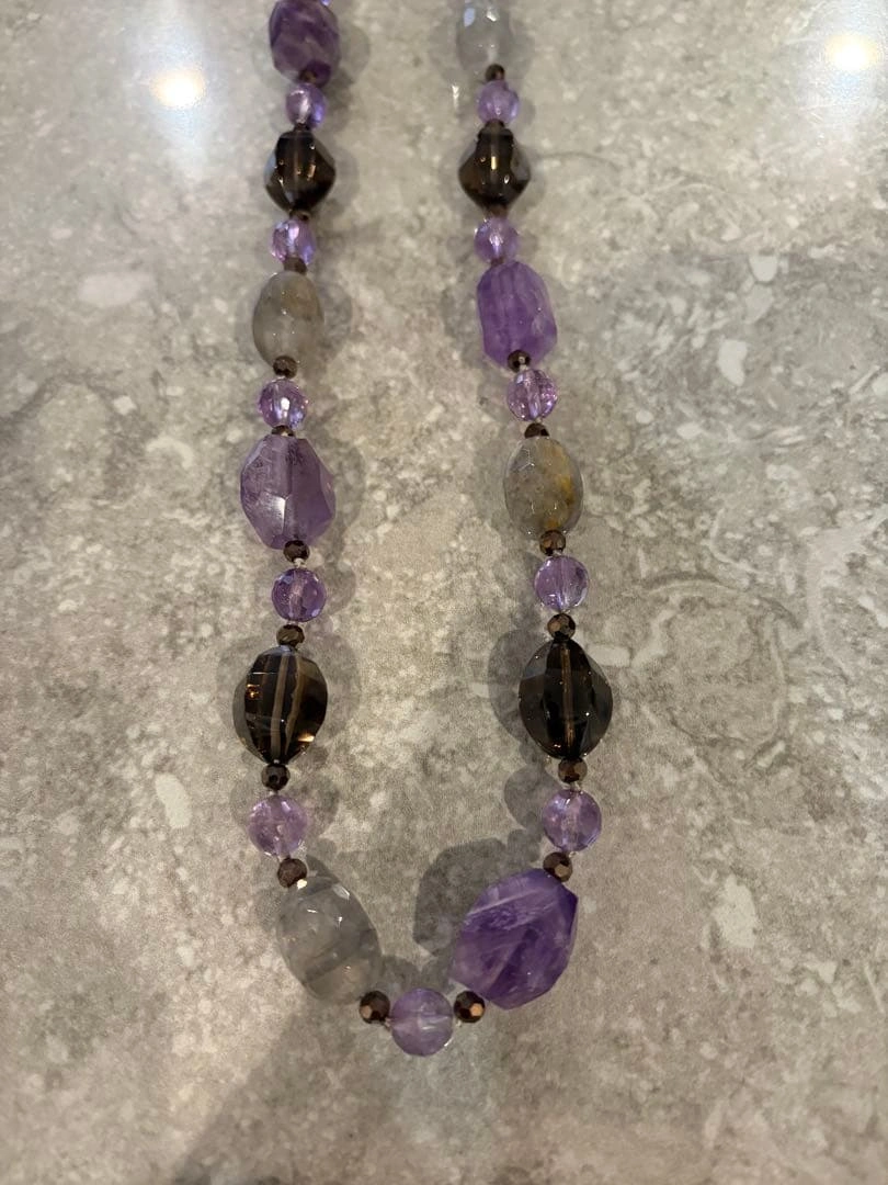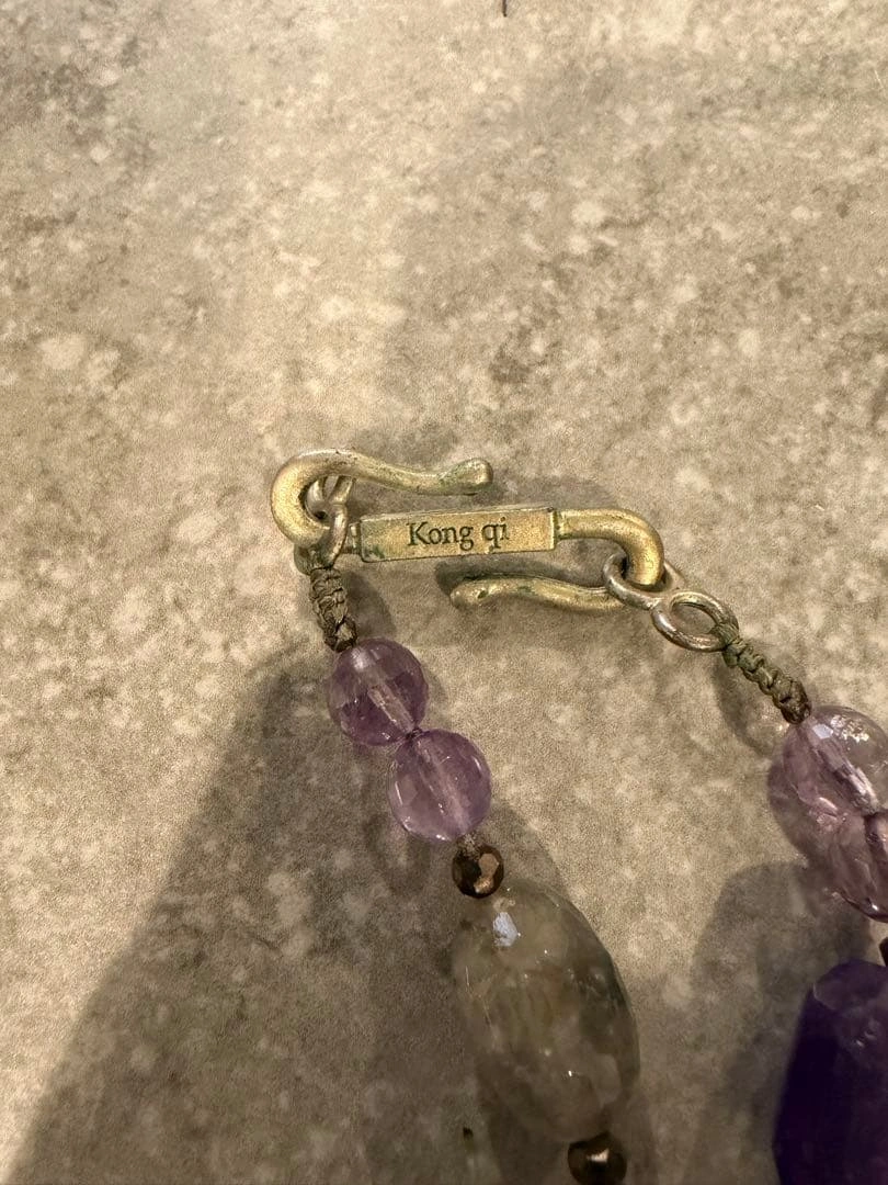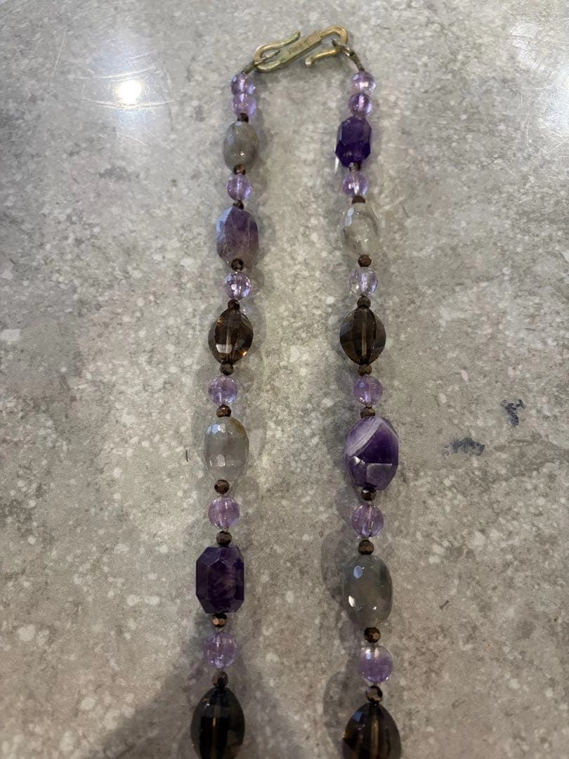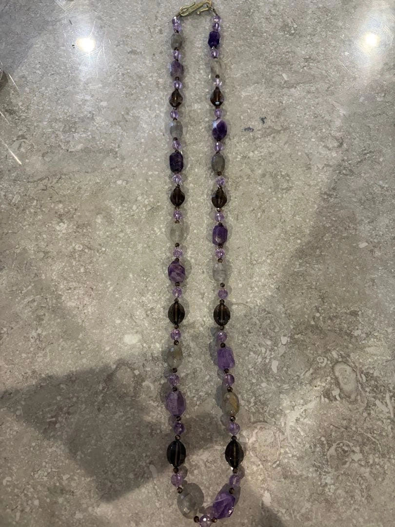 アメジスト天然石を使用したロングネックレスです。 フック部分に緑青があります。 神経質な方はご遠慮ください。 素材: 天然石 長さ: ロングネックレス 留め具: フック式 長さ96cm ご覧いただきありがとうございます。 ご希望の方はお気軽にご連絡ください。